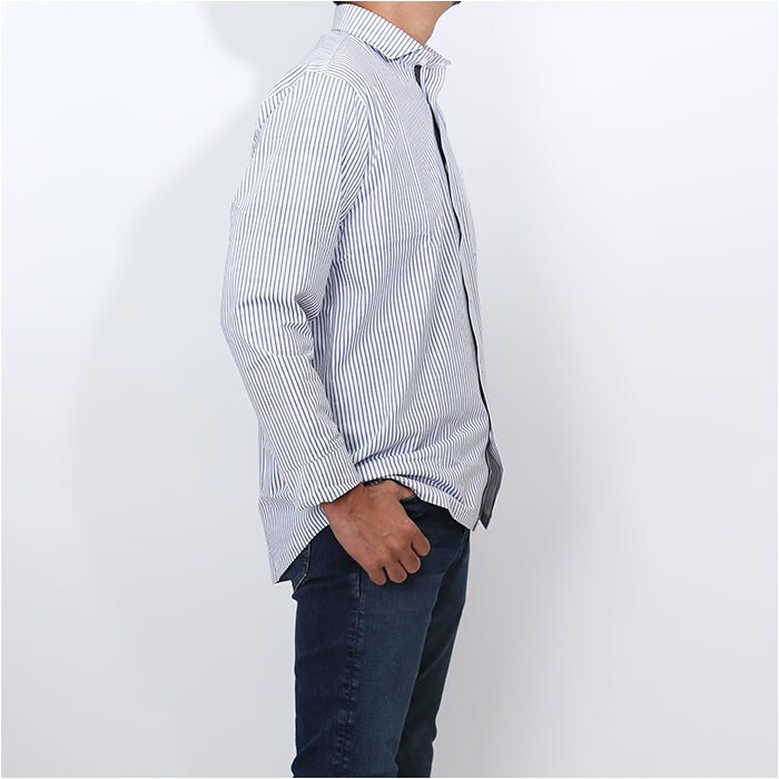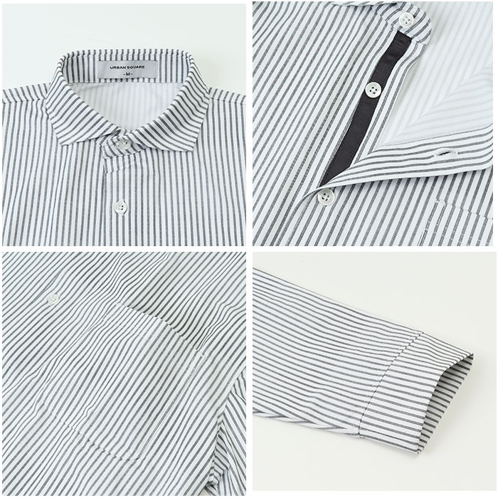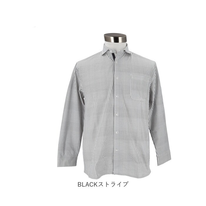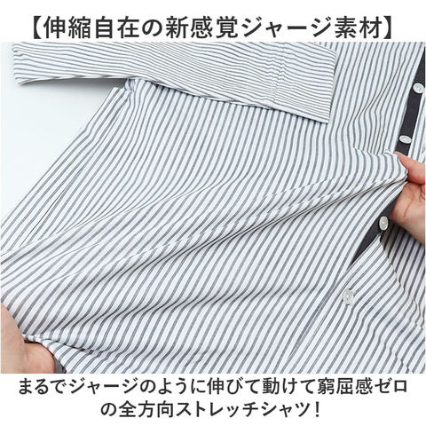 URBAN SQUARE ハイブリッドジャージー カッタウェイカットシャツ【NAVYストライプ】【Mサイズ】