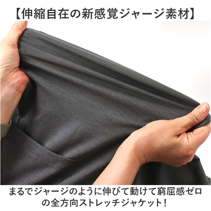 | 商品説明 | 【ラクなのにキチンと見える!】マルチに活躍☆URBAN SQUARE ハイブリッドジャージ テーラードジャケット。【伸縮自在の新感覚ジャージ素材】まるでジャージのように伸びて動けて窮屈感ゼロの全方向ストレッチジャケット!【きちんと感のある生地】ハリがあり、普段使いはもちろんオフィスにも使える上品な雰囲気をプラス。【暑い時期でも快適に】素早く汗を吸収し乾きが早く暑い時期でもひんやりと快適に着用可能◎【便利なポケット】メモやペンなどを差し込めるポケットをフロントに2つ配置。【アイロンがけ不要イージーケア】シワが発生しにくいポリエステル生地でアイロンがけの手間がなく着たい時にサッと着用。【お手入れも簡単】洗濯機で簡単に洗えるのも魅力。洗濯後もすぐに乾くので毎日の使用にも最適。【様々なシーンで活躍】ビジネススタイルはもちろん、カジュアルにも着こなせる優秀アイテム! |