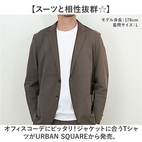 | 商品説明 | 【スーツと相性抜群☆】オフィスコーデにピッタリ!ジャケットに合うTシャツがURBAN SQUAREから発売。【ジャケット専用インナー】後襟を高く設計したジャケット専用のドレスTシャツ♪上品な艶感のある厳選した素材を採用。【スマートに決まる】袖と襟はリブ編みを施しシンプルながらもスマートなアクセントに。【汚れが付きにくい襟高設計】Tシャツの襟後を高く設計し、ジャケット着用時も肌に触れにくく襟裏に汚れが付きにくい【オールシーズン使える】サラッとした肌触りのコットン生地でオールシーズン使えるのも嬉しいポイント。【動きやすいストレッチ性】ストレッチ性があるので動きやすく、外出が多い方や営業マンにもオススメ♪【ジャケットを選ばないカラー】モノトーンカラーでシンプルに。ジャケットの種類やカラーを選ばずに着こなせる◎ |