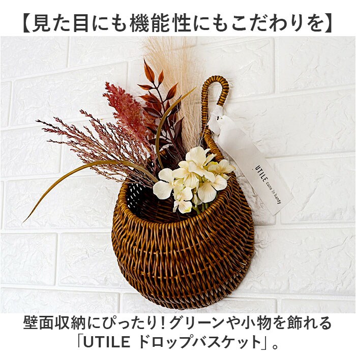 | 商品説明 | 【見た目にも機能性にもこだわりを】壁面収納にぴったり!グリーンや小物を飾れる「UTILE ドロップバスケット」。【天然素材のようなナチュラル感】ポリプロピレンとポリエチレンを使って手編み。生活感が出にくく置いておくだけでサマになる!【水に強く、濡れても大丈夫】水を使う場所でも安心。天然素材のようにカビや虫、湿気を気にする心配なし。【ころんと可愛らしい雫型バスケット】丸みを帯びた優しい雰囲気。玄関や洗面所など、スペースの限られた場所に使いやすいサイズ。【フックなどに掛けるだけでOK】上部のループを引っ掛けるだけ。壁はもちろん、冷蔵庫や洗濯機にもセットできて便利。【型崩れしにくく丈夫なつくり】枠組みにアイアン素材を使用し、フォルムをキープ。ガシガシ使ってもへたりにくい◎【手軽に水拭きできてお手入れが簡単】汚れなどが気になったら、水拭きすればOK。お手入れしやすく、衛生面も安心。(※)濡れた状態で放置しないでください。【どんな空間にも素敵にマッチ】飽きが来ず、空間に馴染んで長く愛用できる♪お気に入りのアイテムで、お家時間をより豊かに。 |