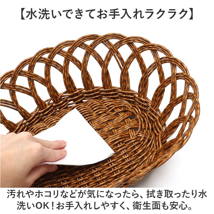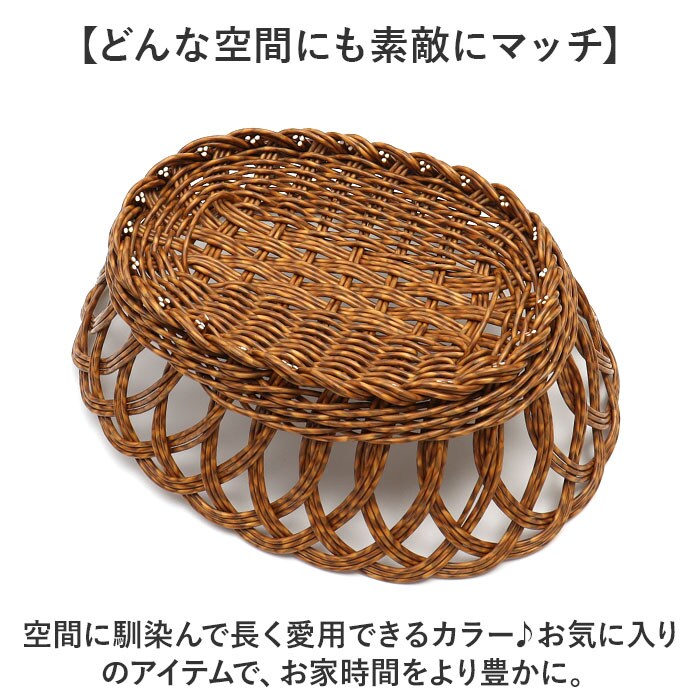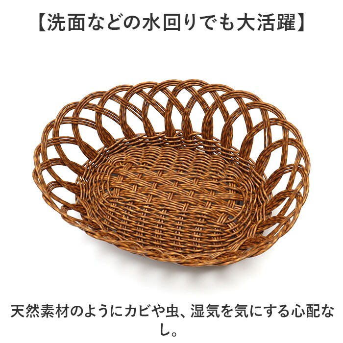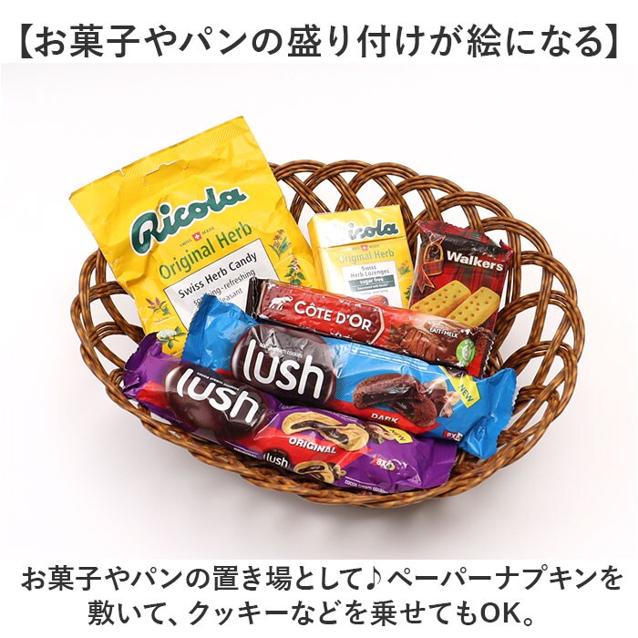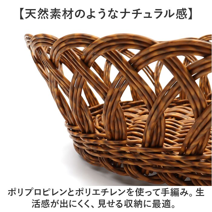 | 商品説明 | 【見た目にも機能性にもこだわりを】温かみのある風合いに、実用的な機能を備えた「UTILE オーバルバスケット」Lサイズ。【天然素材のようなナチュラル感】ポリプロピレンとポリエチレンを使って手編み。生活感が出にくく、見せる収納に最適。【水洗いできてお手入れラクラク】汚れやホコリなどが気になったら、拭き取ったり水洗いOK!お手入れしやすく、衛生面も安心。【洗面などの水回りでも大活躍】天然素材のようにカビや虫、湿気を気にする心配なし。【お菓子やパンの盛り付けが絵になる】お菓子やパンの置き場として♪ペーパーナプキンを敷いて、クッキーなどを乗せてもOK。【電子レンジで温めてそのまま食卓へ】嬉しい電子レンジ対応。温めたらバスケットごとテーブルへ運べて、おしゃれな食卓に♪(※)電子レンジは、最大約900Wを目安にご使用ください。【コスメもケア用品もひとまとめ】デイリー使いのコスメやコーム、ハンドクリームなどを入れておけば、サッと手に取れて便利◎【どんな空間にも素敵にマッチ】空間に馴染んで長く愛用できるカラー♪お気に入りのアイテムで、お家時間をより豊かに。 |