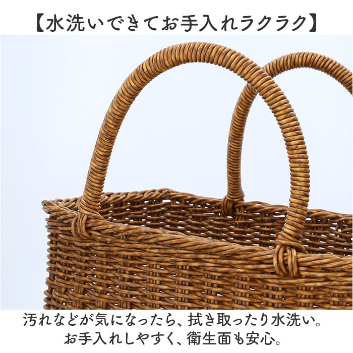| サイズ | 【かごバッグ】 [縦]約26cm/[横(底部)]約30cm/[マチ]約16cm [持ち手]約33cm 【保冷インナー】 [縦]約24cm/[横(底部)]約28cm/[マチ]約13cm ※サイズは当店計測の実寸サイズです。実際の商品ならびにメーカー表記サイズとは多少の誤差が生じる場合がございます。あらかじめご了承ください。 |