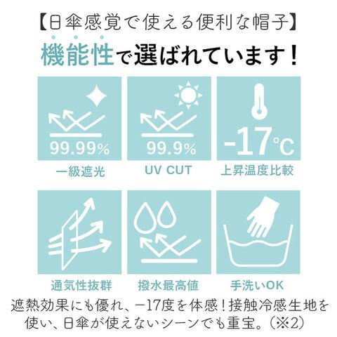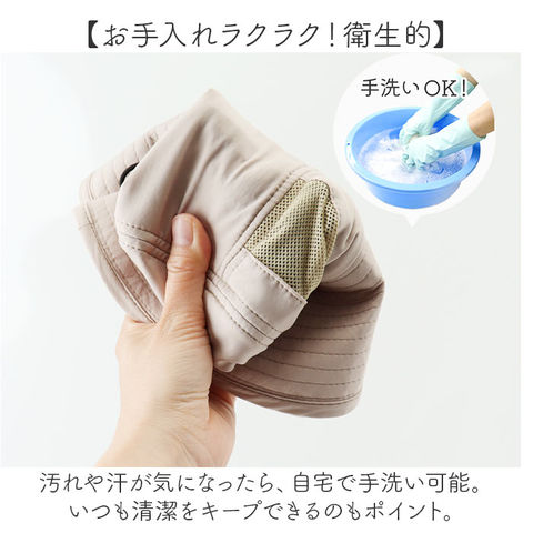 | 商品説明 | 【日差しの強い季節も怖くない!】日焼けや熱中症対策に◎日傘生地を使用した「1級遮光 アドベンチャーハット」。【一級遮光で晴れた日の味方】遮光率99.99%、UVカット率99.9%!生地裏特殊加工で厳しい日差しからお肌を守る◎(※1)紫外線防止指数はUPF50+です。【日傘感覚で使える便利な帽子】遮熱効果にも優れ、-17度を体感!接触冷感生地を使い、日傘が使えないシーンでも重宝。(※2)上昇温度比較-17.3度です。【熱がこもりにくくムレを軽減】頭に直接当たる内側やクラウンの一部は、通気性のあるメッシュ生地仕様。汗ばむ季節も快適。【眩しさも軽減する360度ツバ付き】程よい広さのツバを360度ぐるっと。直射日光が当たるのを防いで、視界も良好。【雨粒を弾く撥水効果もプラス】最高値の撥水性を装備!突然の雨にも対応でき、農作業など水場でも安心。(※3)完全防水ではありません。また撥水効果は永久的なものではございません。【自分サイズに優しくフィット】ドローコードをキュッと絞って、サイズ調節自在。伸縮素材のゴムなので、締め付けない♪(※4)サイズ調整可能範囲の目安:57~59cm。【風の強い日や自転車移動も大丈夫】取り外し可能なあご紐付き。ドローコードで調節でき、吹き飛ばされることなく迷子知らず。【アレンジOK!マルチループ】内側3ヶ所にループを配置。付属のあご紐はもちろん、お手持ちのサンシェードも装着可能。【ひんやり気持ちいい保冷剤をIN】内側にジェル状の保冷剤を入れておけるポケット付き。屋内・屋外問わずクールダウン◎【カバンに取り付けてコンパクトに】本体を折りたたみ、内ポケットに入れてひとまとめ。付属のカラビナでカバンに装着。【お手入れラクラク!衛生的】汚れや汗が気になったら、自宅で手洗い可能。いつも清潔をキープできるのもポイント。【お気に入りを選べるカラー】コーデを選ばず使える、落ち着きのあるカラーをラインナップ。夏の心強い相棒に! |