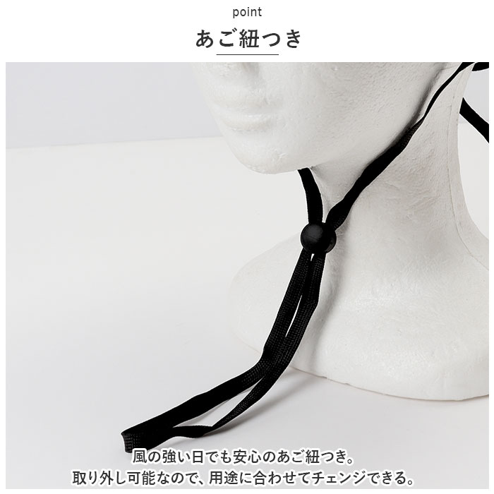 | 注意点 | [付属品]あご紐ストラップ x 1本手洗い 可ドライクリーニング 不可乾燥機 不可長時間日光にあたったり、摩擦、水漏れなどによる色落ちや色移りすることがあります。お取り扱いの際は、商品やパッケージなどに記載されている品質表示、アテンションタグ、ご使用上の注意事項などを必ずご確認下さい。本来の目的以外にはご使用にならないで下さい。カメラやモニターの性質により、画像と実物の色の違いがある場合がございますのでご理解願います。 |