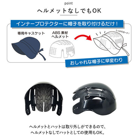| 素材 | [本体]綿90%、レーヨン9%、ポリエステル1% [インナープロテクター]ABS [インナー緩衝材]EVA [あご紐ストラップ]ポリエステル、ステンレス、ポリプロピレン |