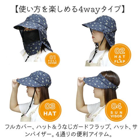 | 商品説明 | 【アイデア次第で活躍の場が広がる】シーンやお好みに合わせて、使い方をチェンジ!日差し対策の味方「UVプロテクトハット」。【日焼けや熱中症を防ぐ夏の相棒】UVカット加工を施したハット。直射日光が当たるのを防ぐ、大きめのつばもポイント。【アウトドアやレジャーシーンでも】水滴や汚れをサッと弾く、撥水加工済み。お天気の急変などにも慌てない♪【使い方を楽しめる4wayタイプ】フルカバー、ハット&うなじガードフラップ、ハット、サンバイザー。4通りの便利アイテム。【全てのパーツを使ってフルガード】スナップボタン式のフラップやフェイスガードを装着。全方位守れて安心。【デコルテカバー&呼吸もラクラク】フェイスガードでデコルテ周りを守る◎息がしやすい口元メッシュ加工&水分補給可能な通気口。【首元後ろもしっかり対策◎】うなじガードフラップを取り付け。つい対策を忘れがちな、うなじの日焼けを防ぐ!【ベーシックなハットとしても】フラップとフェイスガードを外すと、シンプルなハットに。バック面ファスナーで自分サイズ。【スポーツシーンなどで活躍】パーツを外すと、サンバイザーに。ヘアスタイルが崩れにくく、頭もムレにくい!(※1)上部はファスナー式です。【風の強い日や自転車移動も大丈夫】取り外し可能なあご紐付き。ドローコードで調節でき、吹き飛ばされることなく迷子知らず。【自宅で丸洗いできてお手入れ簡単】汚れや汗が気になったら、ネットに入れて洗濯。いつも清潔をキープできるのが嬉しい!(※2)洗濯機の弱モードをご使用ください。【お気に入りを選べるカラー】コーデに馴染みやすい無地カラーや、ちょっとしたアクセントになる柄物をラインナップ! |
