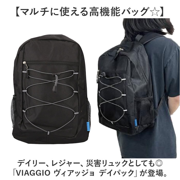 | 商品説明 | 【マルチに使える高機能バッグ☆】デイリー、レジャー、災害リュックとしても◎「VIAGGIO ヴィアッジョ デイパック」が登場。【荷物が多い日や旅行にぴったり!】必要な荷物をザクザク収納できる大容量サイズ。A4サイズを入れても上部に余裕アリ◎【軽量だから負担なしでラクチン】たくさん荷物を入れても重さが気にならない◎バッグ本体の重さはわずか約305gと扱いやすい!【非常持ち出し袋にも最適!】家族みんなの避難グッズの収納にオススメ◎2Lのペットボトルが入るサイズ感がちょうどいい。【暗い夜道も安心のリフレクターつき】天気が悪い日や暗い道でも安心のリフレクターを、バンジーコードのループ部分にON☆【高機能の外側ポケット&収納】ペットボトルや折傘が入る、オープンポケット。服やタオルを掛けられる、バンジーコード。【クッションINの背中と肩紐】ストラップと背中にクッションを配置。長時間の持ち歩きの負担を軽減する優しい作り。【ポケット仕様】フロント:ファスナーポケット×1サイド:オープンポケット×2 |