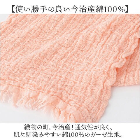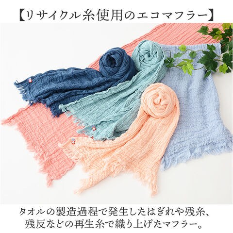 | 商品説明 | 【環境に配慮したおしゃれアイテム】心地よさとファッション性を兼ね備えた「今治縮みガーゼマフラー Green」が新登場。【リサイクル糸使用のエコマフラー】タオルの製造過程で発生したはぎれや残糸、残反などの再生糸で織り上げたマフラー。【使い勝手の良い今治産綿100%】織物の町、今治産!通気性が良く、肌に馴染みやすい綿100%のガーゼ生地。【ふっくら柔らかな仕上がり】シワ感のある特殊な織り。チクチク感ゼロで保温性があり、冷房対策にも効果的。【汗ばむ季節もサラッと快適】吸汗性に優れ、暑い季節も肌にまとわりつかずムレにくいのがポイント。【気になる紫外線からお肌をガード】UVカット率97%以上。デコルテまわりを日差しから守る、夏のお出かけの味方☆(※)マフラーの通常着用時を想定し、2枚重ねて検査しています。【自宅で丸洗いできて衛生的】汚れや汗が気になったらネットに入れて洗濯機洗いでき、清潔をキープ。洗濯後の乾きも速い◎【毎日使いたくなるシンプルデザイン】お出かけや通勤、アクティブシーン。オン・オフ問わず大活躍。【コーデの程よいアクセントに】いつものコーデにプラスワン♪優しい風合いの、彩り豊かなカラーをラインナップ。 |