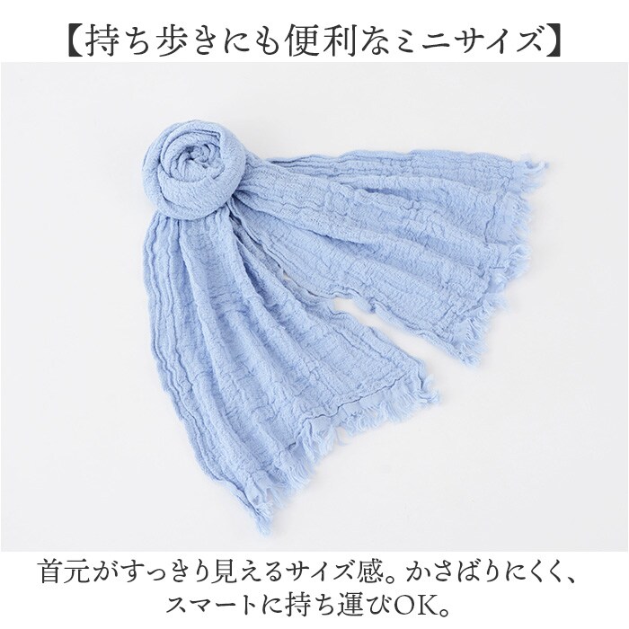 | 商品説明 | 【環境に配慮したおしゃれアイテム】心地よさとファッション性を兼ね備えた「今治縮みガーゼマフラーミニ Green」が新登場。【リサイクル糸使用のエコマフラー】タオルの製造過程で発生したはぎれや残糸、残反などの再生糸で織り上げたマフラー。【使い勝手の良い今治産綿100%】織物の町、今治産!通気性が良く、肌に馴染みやすい綿100%のガーゼ生地。【ふっくら柔らかな仕上がり】シワ感のある特殊な織り。チクチク感ゼロで保温性があり、冷房対策にも効果的。【汗ばむ季節もサラッと快適】吸汗性に優れ、暑い季節も肌にまとわりつかずムレにくいのがポイント。【気になる紫外線からお肌をガード】UVカット率97%以上。デコルテまわりを日差しから守る、夏のお出かけの味方☆(※)マフラーの通常着用時を想定し、2枚重ねて検査しています。【自宅で丸洗いできて衛生的】汚れや汗が気になったらネットに入れて洗濯機洗いでき、清潔をキープ。洗濯後の乾きも速い◎【持ち歩きにも便利なミニサイズ】首元がすっきり見えるサイズ感。かさばりにくく、スマートに持ち運びOK。【毎日使いたくなるシンプルデザイン】お出かけや通勤、アクティブシーン。オン・オフ問わず大活躍。【コーデの程よいアクセントに】いつものコーデにプラスワン♪優しい風合いの、彩り豊かなカラーをラインナップ。 |