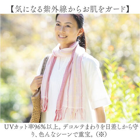 | 商品説明 | 【春夏のお出かけのお供にぴったり】心地よさとファッション性を兼ね備えた「さらりとかるい かさね縞マフラー」が新登場。【こだわりのメイドインジャパン】織物の町、今治産!上質な仕上がりで、長く愛用できるアイテム。【シルクのように滑らかな肌触り】さらりと柔らかなコットンとシルクのように滑らかなバンブーレーヨン糸を織り交ぜたマフラー。【汗ばむ季節もサラッと快適】汗をしっかり吸収し、通気性も抜群◎暑い季節もべたつきにくく、ムレにくいのがポイント。【気になる紫外線からお肌をガード】UVカット率96%以上。デコルテまわりを日差しから守り、色んなシーンで重宝。(※)マフラーの通常着用時を想定し、4枚重ねて検査しています。【自宅で丸洗いできて衛生的】汚れや汗が気になったらネットに入れて洗濯機洗いでき、清潔をキープ。洗濯後の乾きも速い◎【かさばりにくく持ち運びもスマート】コンパクトに折りたためて、とっても軽量。バッグに忍ばせて、冷房や日焼けや対策に。【コーデの程よいアクセントに】いつものコーデにプラスワン♪優しい風合いの、ストライプデザイン。 |