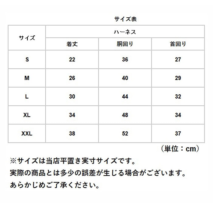 | 商品説明 | 温かみのある素材使いが寒い日のお散歩にぴったり♪ペット用ハーネスが新登場。身体に当たるハーネス内側の生地にはふんわりソフトなフリース素材を採用。ハーネスの背中はファスナーで開閉できるほか、ワンタッチ装着が可能なバックルベルトタイプで着脱簡単♪リードで引っ張られる力を、胸や肩など身体全体で受け止めるハーネスタイプだから、身体への負担を優しく軽減。SサイズからXXLサイズまで、身体のサイズに合わせて選べる嬉しいラインナップ。 |