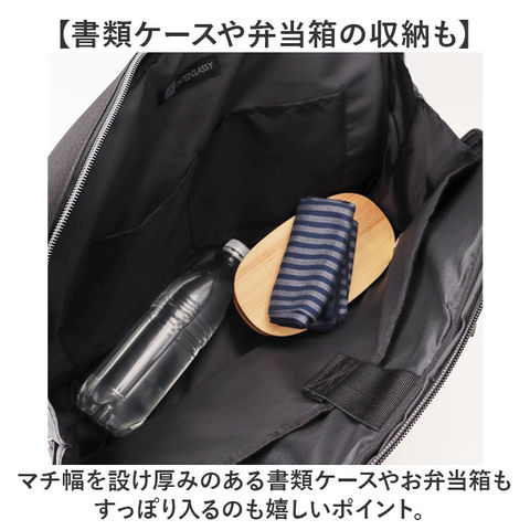 | 商品説明 | 【ビジネスシーンにピッタリ】ビジネスにも出張にも使える機能性がポイント☆スタイリッシュなビジネストートが新発売。【営業周りや普段の通勤に】A4サイズの書類はもちろん、ノートパソコンも入るサイズでビジネスマンにピッタリなバッグ。【PCやタブレットを入れるのに】メイン収納内にウレタン入りのポケットを搭載し、電子機器を安全に持ち運び可能。【書類ケースや弁当箱の収納も】マチ幅を設け厚みのある書類ケースやお弁当箱もすっぽり入るのも嬉しいポイント。【細々とした小物も整頓】複数のポケットを設け、細々とした小物をすっきり収納可能。【大きなものも出し入れスムーズ】メイン収納はサイドの端まで下ろせるダブルファスナー。引っかからず出し入れがスムーズ。【置き場所に困らない自立式】底鋲が付いているので机の下やベンチの上などちょっとしたスペースに置けるのもGOOD【2WAYで持てるショルダー】ショルダーベルトを付属し、肩掛け、斜め掛けにも対応。荷物が多い日も持ち運びが楽に◎【移動が多い出張シーンにも】キャリーの持ち手を通せるベルトを搭載。キャリーケースと一緒に持ち運べる。【人やシーンを選ばないデザイン】シンプル&スマートなデザインなので、いつでも誰でも使用可能☆【毎日気軽に使える】ポリエステル素材を使用し、軽さはもちろん水に濡れても安心素材。毎日の通勤に使える!※(※)撥水・防水機能はございません。【ポケット仕様】メイン収納・・・PCポケット×1、オープンポケット×2フロント・・・マグネット式オープンポケット×1(内側:オープンポケット×2、ペン挿し×2)背面・・・ファスナーポケット×1 |