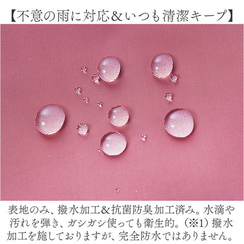 | 注意点 | 【丸洗いできてお手入れラクラク】汚れが気になったら、自宅で洗濯機洗いOK。いつも清潔をキープできるのが嬉しい☆(※2)洗濯機の弱or手洗いモードをご使用ください。【ポケット仕様】内側:ファスナーポケット×1前面:L字式ファスナーポケット×1、伸縮ドリンクホルダー×1洗濯機 可ドライクリーニング 不可乾燥機 不可年月の経過や空気中の湿度や紫外線、熱や汚れ等により、劣化などが生じる場合があります。長時間日光にあたったり、摩擦、水漏れなどによる色落ちや色移りすることがあります。お取り扱いの際は、商品やパッケージなどに記載されている品質表示、アテンションタグ、ご使用上の注意事項などを必ずご確認下さい。本来の目的以外にはご使用にならないで下さい。カメラやモニターの性質により、画像と実物の色の違いがある場合がございますのでご理解願います。 |