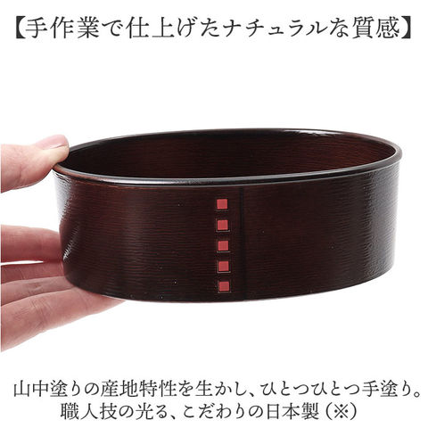 | 商品説明 | 【お弁当箱にもなる便利アイテム】ランチのお供としても、作り置きの保存にも重宝!「わっぱ風保存容器 S・Mセット」。【和の風合い漂うわっぱ風デザイン】木目を表現した、落ち着きのあるデザイン。作り置きをそのまま食卓へ出してもOK。【手作業で仕上げたナチュラルな質感】山中塗りの産地特性を生かし、ひとつひとつ手塗り。職人技の光る、こだわりの日本製。(※)手作業のため、色味にばらつきが生じることがあります。【単体でもセットでも使える2サイズ】少量保存に最適な約210mlのSサイズ。使い勝手の良い約435mlのMサイズのセット。【電子レンジで温められる耐熱性】耐熱温度は140度。フタを外して電子レンジで温め可能、熱々が復活。【食洗機対応でお手入れラクラク】フタを外して、家庭用食洗機の使用も。洗い物時間を短縮できて、忙しい毎日の味方!【入れ子式でコンパクトに収納】SサイズがMサイズに収まる入れ子式。かさばらず、収納が省スペース。【お気に入りを選べるラインナップ】小判と長角の2フォルム。飽きが来ず長く愛用できる、ナチュラルなカラーリング! |