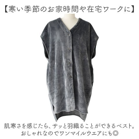| 商品説明 | 【あえての袖なしデザインがGOOD◎】ぬくぬくあったかいけど、すっきりスリム見せ☆「WARMY ロングベスト」が登場。【寒い季節のお家時間や在宅ワークに】肌寒さを感じたら、サッと羽織ることができるベスト。おしゃれなのでワンマイルウエアにも◎【袖なしデザインが使いやすい!】料理や水仕事などの家事、在宅ワークなどの作業がサクサクはかどる、あえての袖なし仕様!【なめらかなプレミアムタッチが魅力】思わず触れてぬくぬくしたくなる、肌触りが自慢!寒い季節を快適に温かく過ごせるアイテム。【こだわりデザインでスタイルUP☆】胸元をすっきり見せるVネック、ゆったり身幅で体型カバー、お尻を隠すバッグ丈…充実の内容!【ガウン風にもできるボタンタイプ】ボタンをお好みで開閉OK!羽織モノのガウンとしての着用もできる。同色ボタンで大人っぽく。【スマホが入る大きめポケット】左右には大きめのポケットを配置。スマホなどの小物を入れて、お部屋の移動も楽々。 |