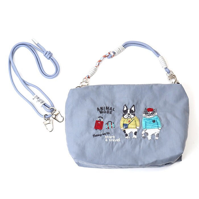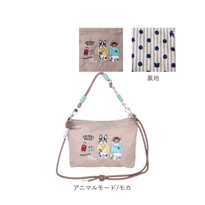 撥水加工刺繍ワッシャーバッグ パラコードポシェット【アニマルモード/モカ】