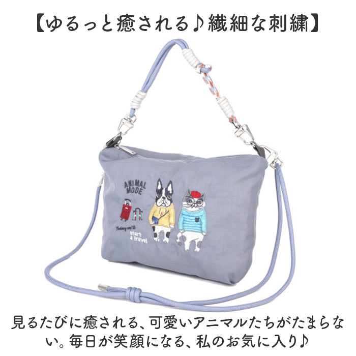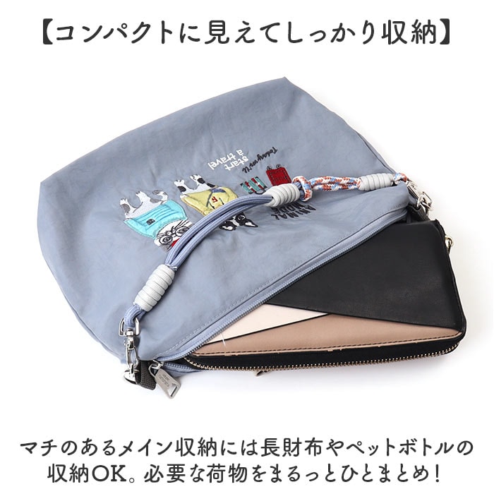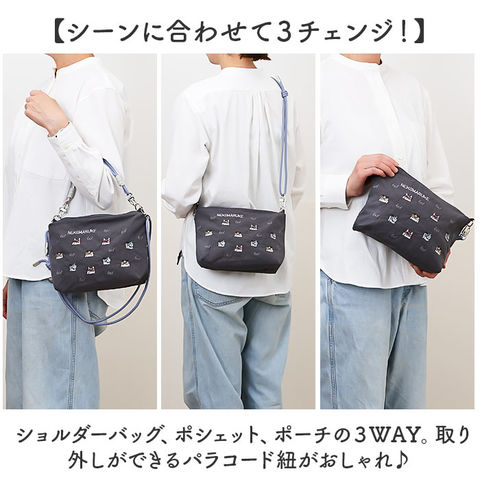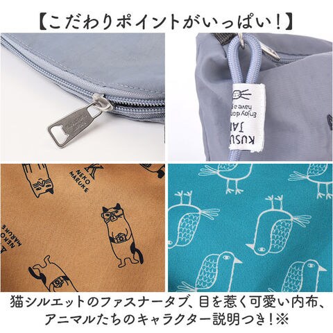 | 商品説明 | 【いろんな使い方ができる3WAY☆】アニマル刺繍に癒される♪「撥水加工刺繍ワッシャーバッグ パラコードポシェット」が登場。【ゆるっと癒される♪繊細な刺繍】見るたびに癒される、可愛いアニマルたちがたまらない。毎日が笑顔になる、私のお気に入り♪【シーンに合わせて3チェンジ!】ショルダーバッグ、ポシェット、ポーチの3WAY。取り外しができるパラコード紐がおしゃれ♪【お出かけにぴったりな軽量&撥水】荷物をたくさん入れてもOKな、女性に嬉しい軽量設計。雨や汚れに強い、撥水加工生地を採用。※完全防水ではありません。【KUSUGURU JAPANならではの可愛さ】やたら猫ばっかり!をコンセプトに布雑貨を作成。オリジナルキャラの「ネコまるけ」が人気♪【コンパクトに見えてしっかり収納】マチのあるメイン収納には長財布やペットボトルの収納OK。必要な荷物をまるっとひとまとめ!【こだわりポイントがいっぱい!】猫シルエットのファスナータブ、目を惹く可愛い内布、アニマルたちのキャラクター説明つき!※商品のカラーにより、説明書きがない物もあります。【ポケット仕様】メイン収納:オープンポケット×1 |
