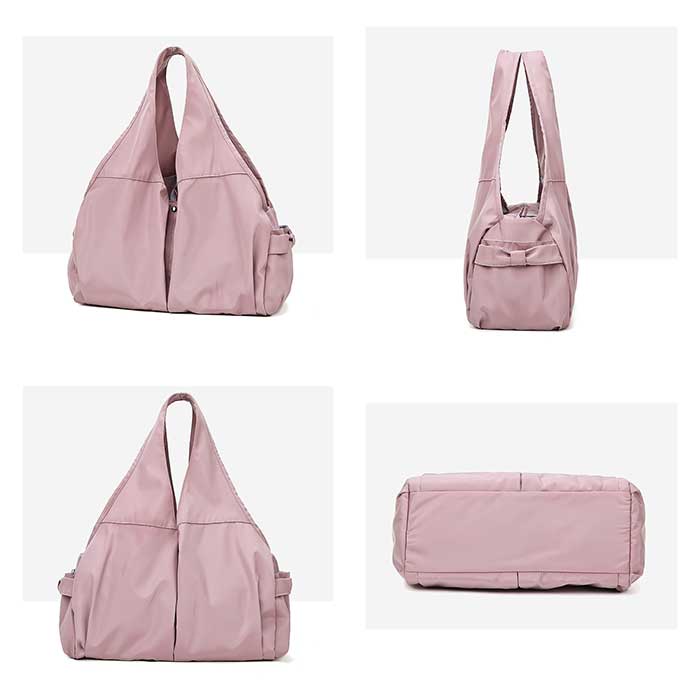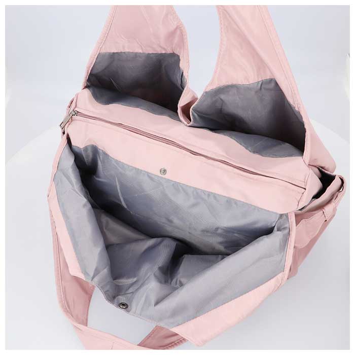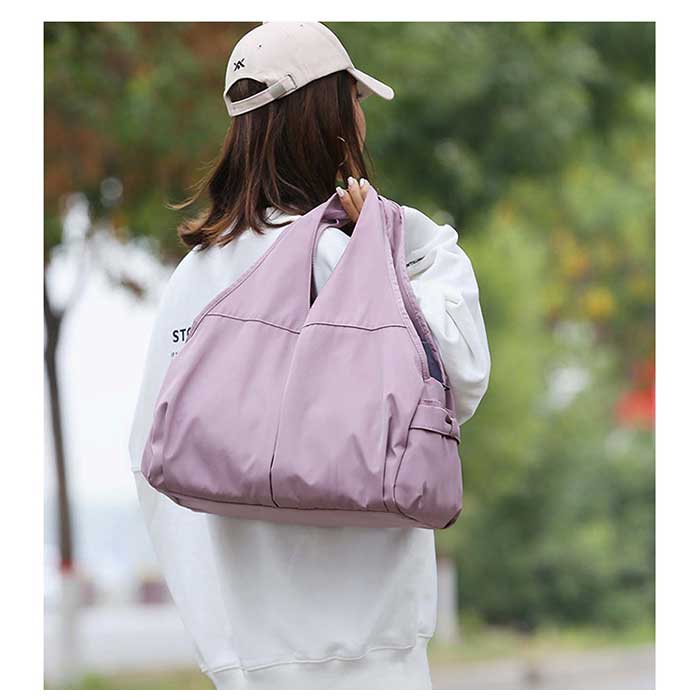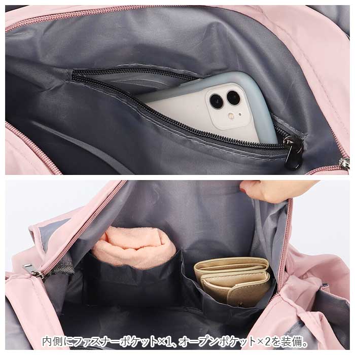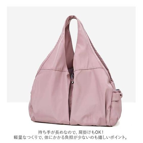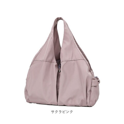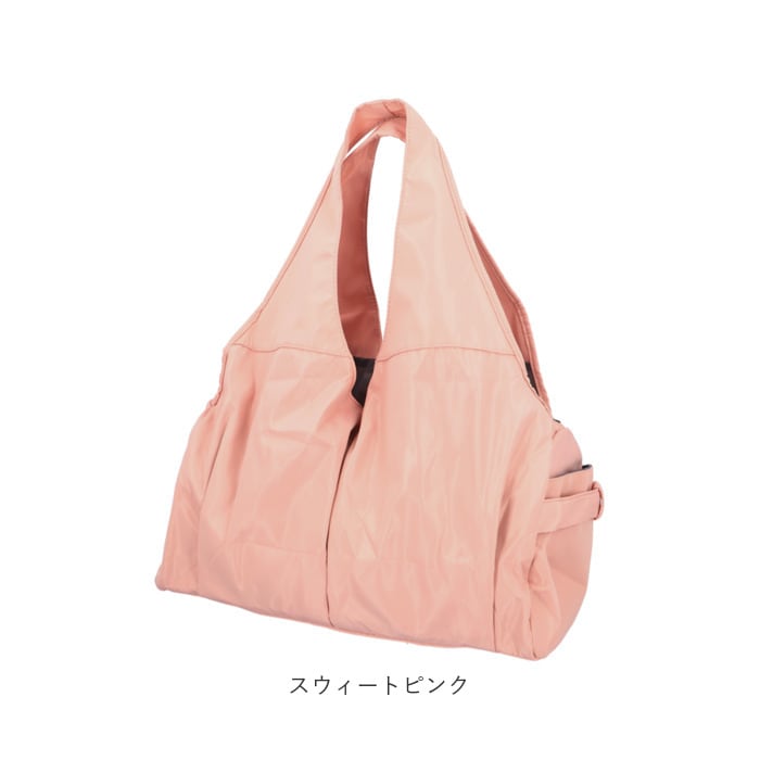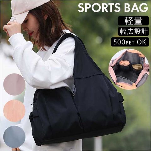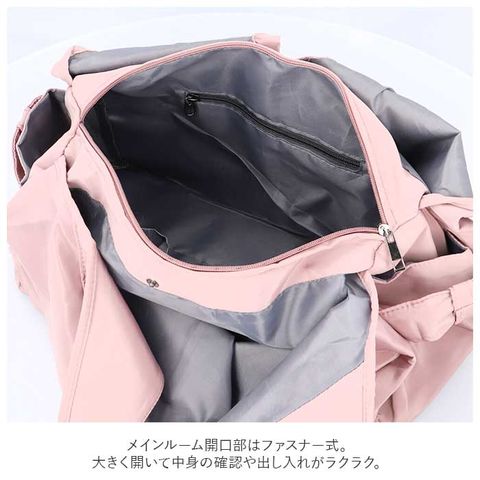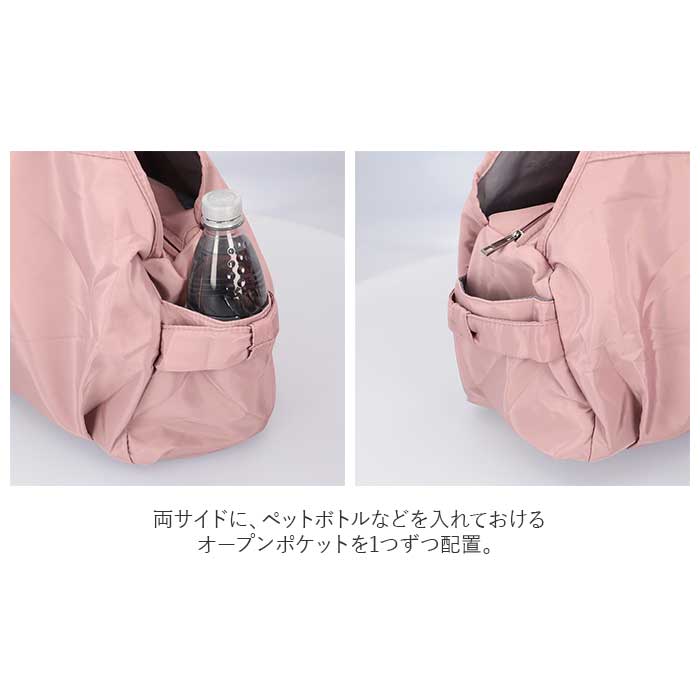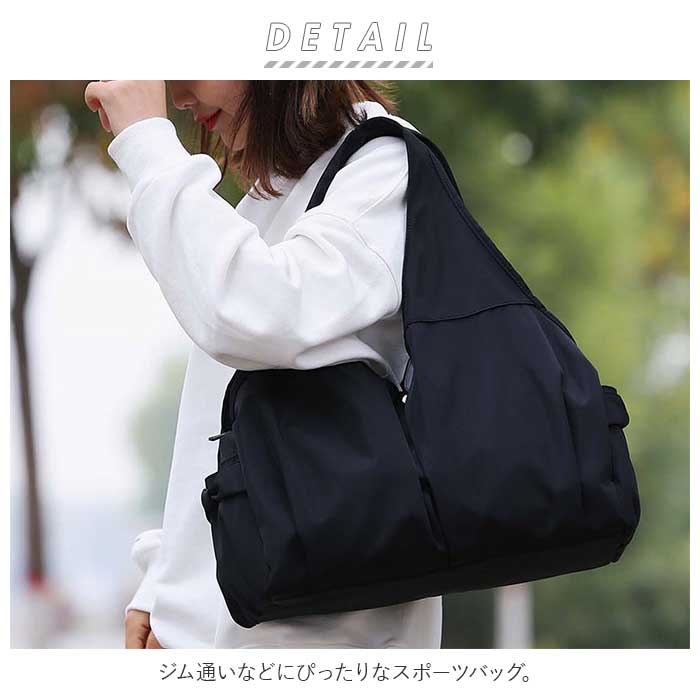 | 商品説明 | ジム通いなどにぴったりなスポーツバッグ。メインルーム開口部はファスナー式。大きく開いて中身の確認や出し入れがラクラク。着替えやバスタオルなどを入れやすい幅広設計。内側にファスナーポケット×1、オープンポケット×2を装備。両サイドに、ペットボトルなどを入れておけるオープンポケットを1つずつ配置。前側にオープンポケット×2を配置。後ろ側にスナップボタン式ポケット付き。持ち手が長めなので、肩掛けもOK!軽量なつくりで、体にかかる負担が少ないのも嬉しいポイント。 |