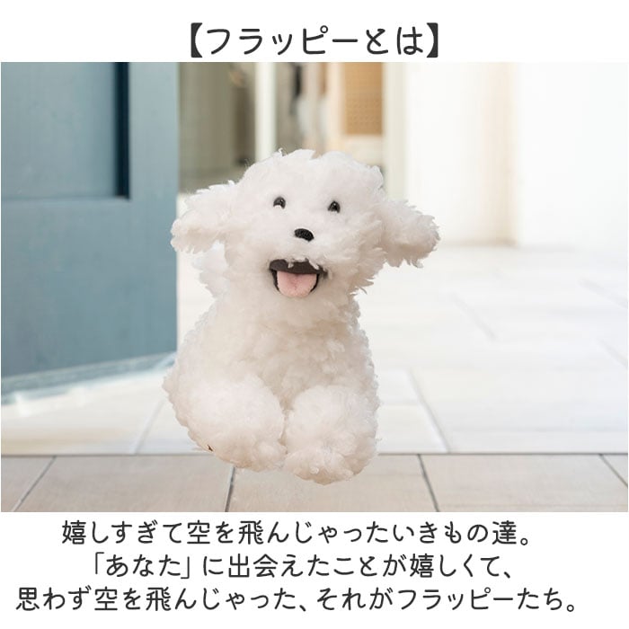 | 商品説明 | 【玄関で迎えるマスコット】ウェルカムアイテムとして玄関を明るく彩る「フラッピー」。【フラッピーとは】嬉しすぎて空を飛んじゃったいきもの達。「あなた」に出会えたことが嬉しくて、思わず空を飛んじゃった、それがフラッピーたち。【愛らしいアニマル】犬モチーフのキュートなデザインが訪れる人を和ませる。【場所を取らないサイズ感】玄関やリビングに飾りやすい◎【思わず撫でたくなる柔らかさ】優しい柔らかな触り心地〇【名前と日付を記入】専用シートに書き込んで世界に一つだけの記念品に。【プレゼントに最適】大切な人への贈り物として喜ばれるキュートなデザイン。 |