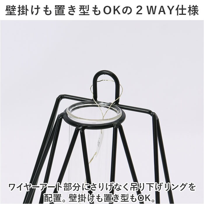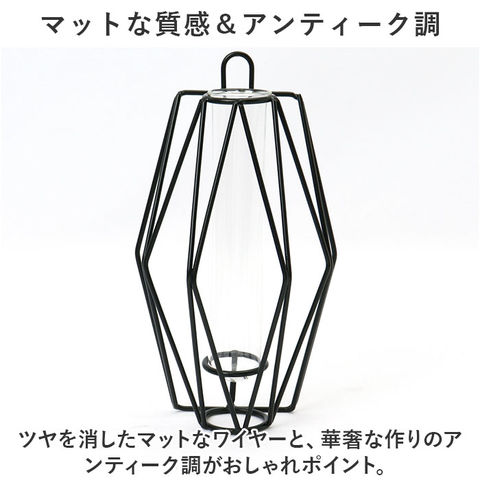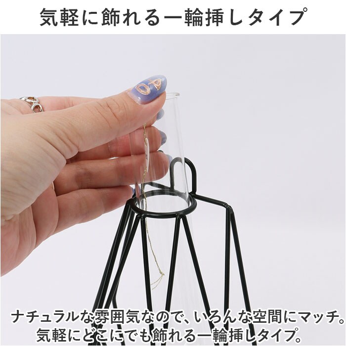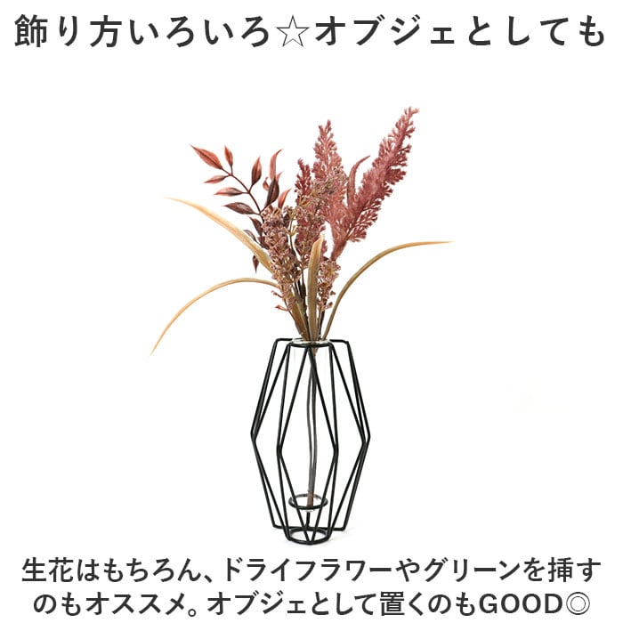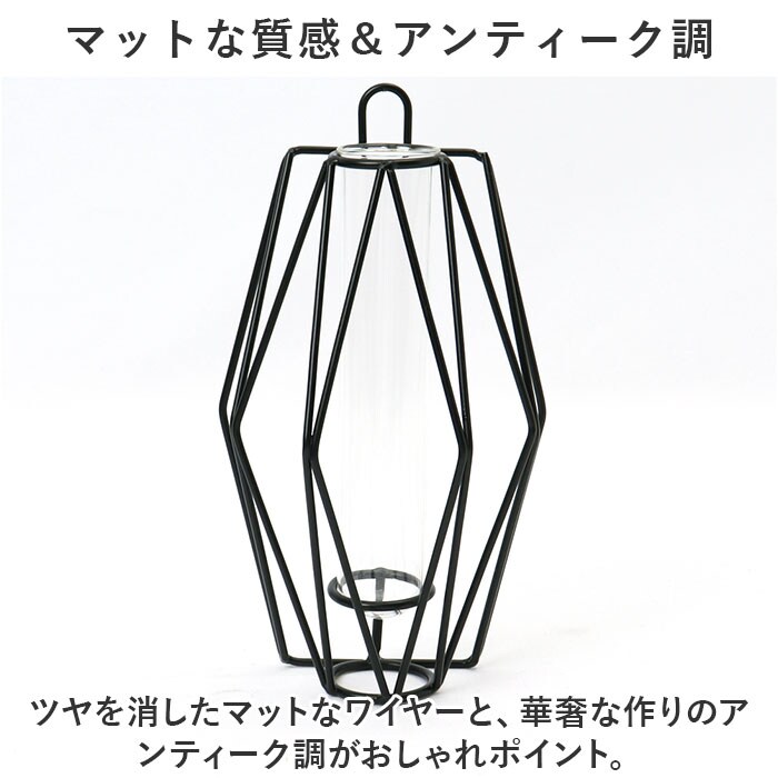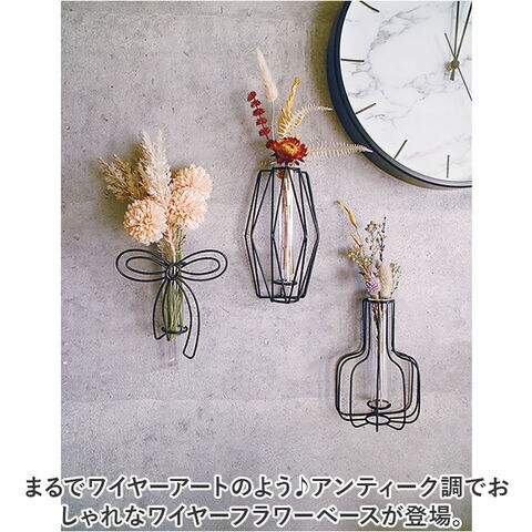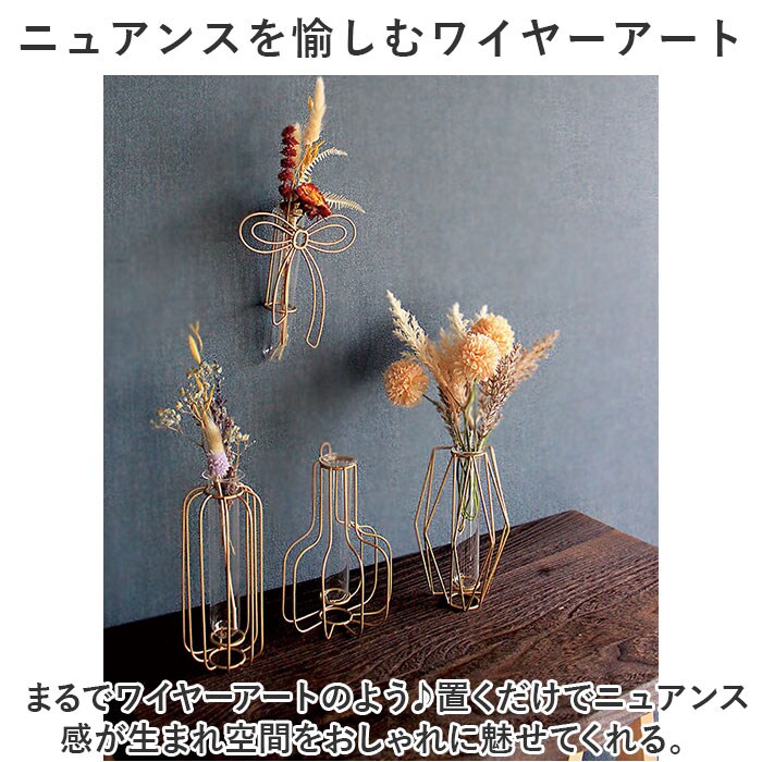 | 商品説明 | まるでワイヤーアートのよう♪アンティーク調でおしゃれなワイヤーフラワーベースが登場。【ニュアンスを愉しむワイヤーアート】まるでワイヤーアートのよう♪置くだけでニュアンス感が生まれ空間をおしゃれに魅せてくれる。【気軽に飾れる一輪挿しタイプ】ナチュラルな雰囲気なので、いろんな空間にマッチ。気軽にどこにでも飾れる一輪挿しタイプ。【壁掛けも置き型もOKの2WAY仕様】ワイヤーアート部分にさりげなく吊り下げリングを配置。壁掛けも置き型もOK。※デザインにより置き型ができないものもあります。【試験管は取り外し可能。楽々水替え】お花を入れる試験管は取り外し可能。水替えも楽々&洗えるので清潔さをキープできる◎【マットな質感&アンティーク調】ツヤを消したマットなワイヤーと、華奢な作りのアンティーク調がおしゃれポイント。【飾り方いろいろ☆オブジェとしても】生花はもちろん、ドライフラワーやグリーンを挿すのもオススメ。オブジェとして置くのもGOOD◎【お祝いやちょっとしたお礼にも】お部屋に馴染む、ナチュラルテイストで高級感のある一品。引っ越し祝いや贈り物にも最適。 |