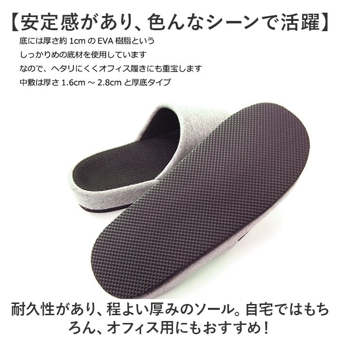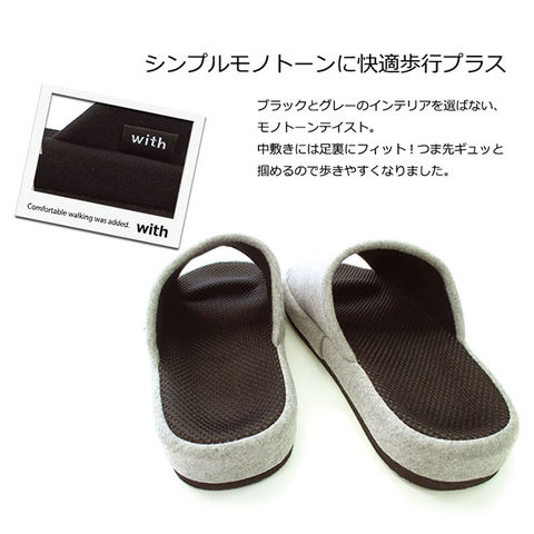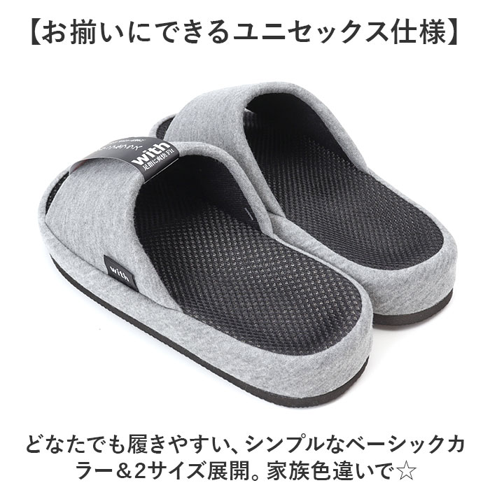 | 商品説明 | 【あなたの足に心地よくフィット】抜群の履き心地◎「with 足指に爽快Fit ぴったりフィット足指グリップ」が新登場。【快適な歩行を優しくサポート】中敷きの指先付け根に当たる位置に、”足指グリップ”を。足指に自然に力が入って快適◎【足裏サラリ。いや~なムレを軽減】足裏に当たる部分は、サラサラとしたメッシュ生地。通気性にも優れ、夏場もストレスフリー。【傷つきを防いでお手入れもラクラク】底面はフローリングを傷つけることなく、汚れもサッと拭き取りOK。【安定感があり、色んなシーンで活躍】耐久性があり、程よい厚みのソール。自宅ではもちろん、オフィス用にもおすすめ!【お揃いにできるユニセックス仕様】どなたでも履きやすい、シンプルなベーシックカラー&2サイズ展開。家族色違いで☆ |