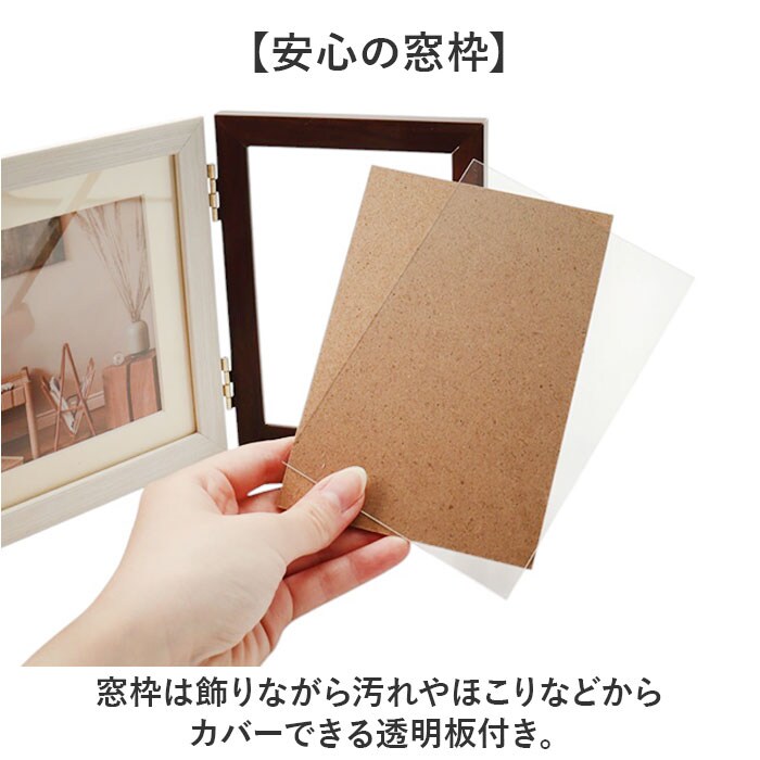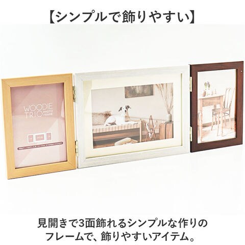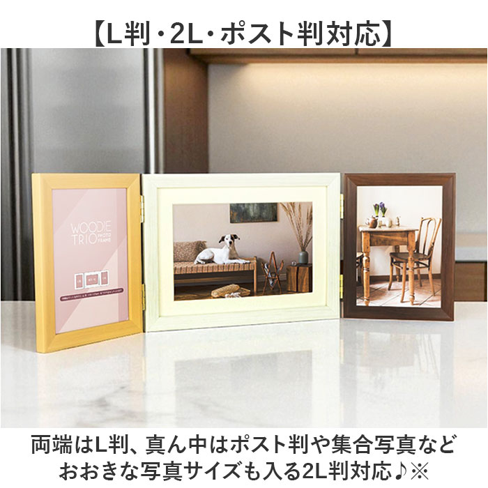 | 商品説明 | 【家族の写真を飾るのにピッタリ】お気に入りの家族の写真を飾るのにオススメ♪ポストカード・L判対応のトリオフレーム。【L判・2L・ポスト判対応】両端はL判、真ん中はポスト判や集合写真などおおきな写真サイズも入る2L判対応♪※(※)2L・ポスト判は真ん中のフレームのみ入りますマット台紙あり:ポスト判 マット台紙なし:2L判【シンプルで飾りやすい】見開きで3面飾れるシンプルな作りのフレームで、飾りやすいアイテム。【写真を引き立てる木目調】シンプルな見た目の木目調フレームは写真をより良く引き立てる♪【ナチュラルな雰囲気も】温もりも感じる木目調のフレームはナチュラルさもあり、様々なインテリアに馴染むのも◎【安心の窓枠】窓枠は飾りながら汚れやほこりなどからカバーできる透明板付き。【ポストカードも入る】中央のフレームはポストカードも収納可能。旅やイベントの思い出の品と一緒に飾れる◎ |