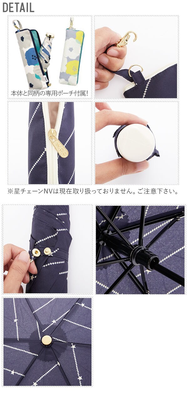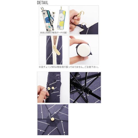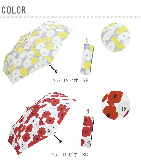 | 商品説明 | とってもキュートなジッパーケース仕様がポイント。 ケースには、W.P.Cのオリジナルネームタグ付き! サイドにファスナーがついてるので、出し入れがしやすく、 グラスファイバーを使用していので、軽く、コンパクトに持ち運べます。 紫外線防止効果があり、日傘としても使えます。 熱中症対策や紫外線対策に是非欲しいアイテム。贈り物としても最適なジッパーケース付き♪ ※晴雨兼用ではございますが、十分にご注意ください。 |