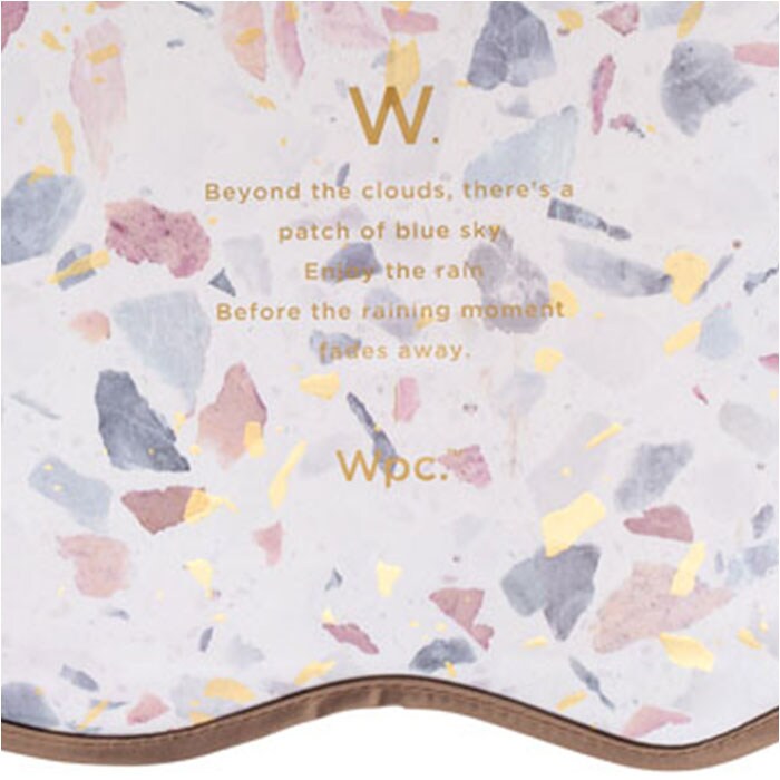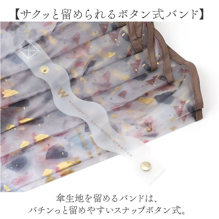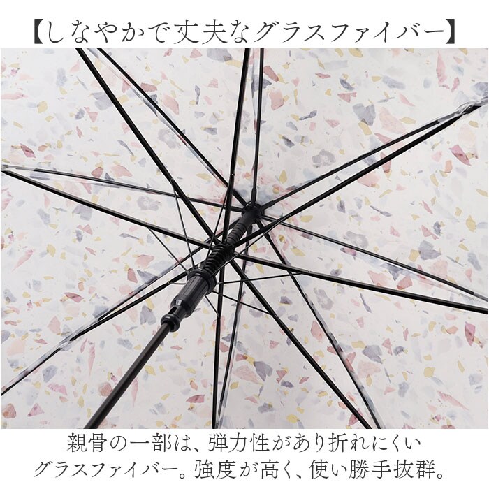 | 商品説明 | 【雨の日も相棒と楽しくお出かけ】おしゃれに持ち歩ける長傘♪「ワールドパーティー Wpc. ペールストーンアンブレラ」。【サマになるフォトジェニック傘】韓国雑貨をモチーフにしたテラゾー柄。絶妙な抜け感の中に、ゴールドや波打つパイピングを☆【しなやかで丈夫なグラスファイバー】親骨の一部は、弾力性があり折れにくいグラスファイバー。強度が高く、使い勝手抜群。【簡単ワンタッチオープン】片手でサッと開きやすいジャンプ式。片手に荷物がある時もラクラク。【サクッと留められるボタン式バンド】傘生地を留めるバンドは、バチンっと留めやすいスナップボタン式。【ディテールにもしっかりこだわりを】爽やかなクリア素材に線を加えたハンドル。【眺めているだけで可愛いデザイン】愛着を持って大切に使えるビニール傘。玄関に置いておくだけでインテリアに♪ |