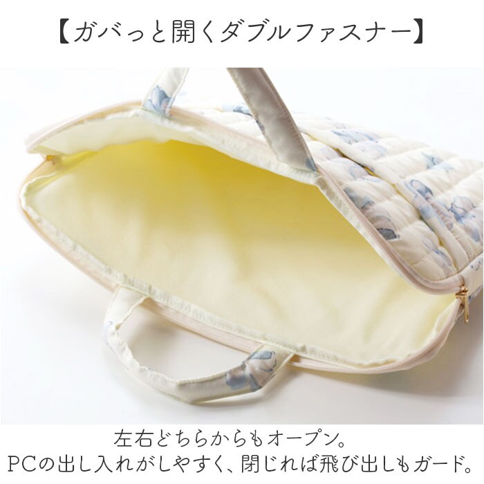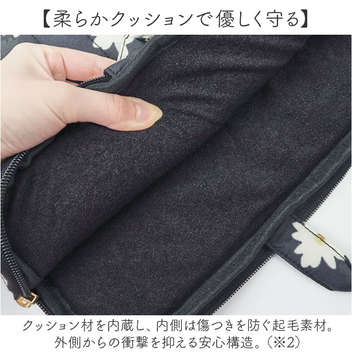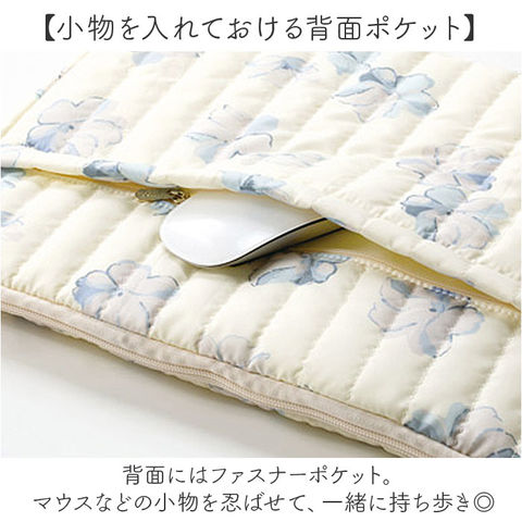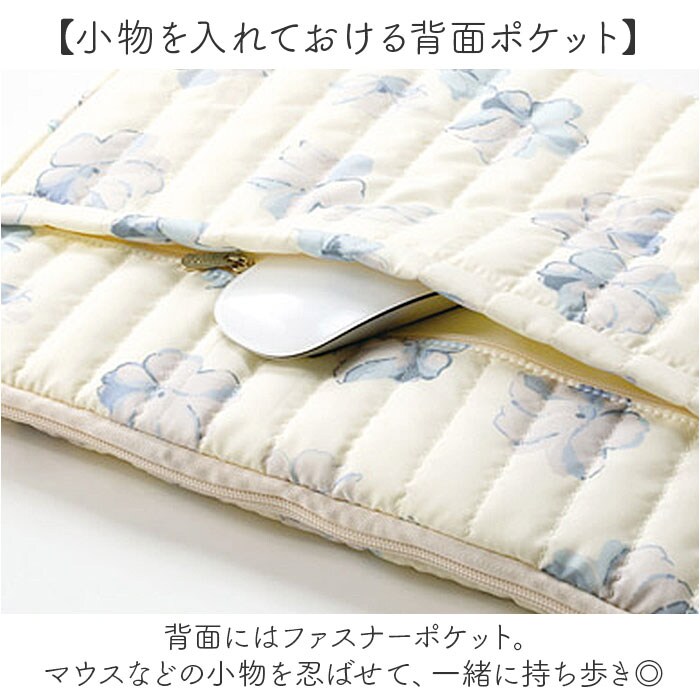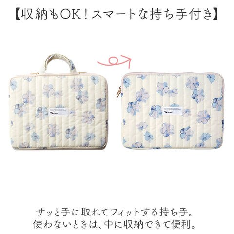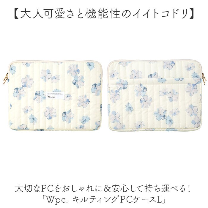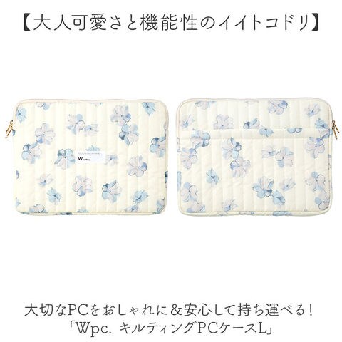 | 商品説明 | 【大人可愛さと機能性のイイトコドリ】大切なPCをおしゃれに&安心して持ち運べる!「Wpc. キルティングPCケースL」。【傘生地をアップリサイクル】傘のデッドストック生地を採用。環境に配慮した、サスティナブルアイテム◎【ちょっとの雨なら大丈夫】傘生地を使用しているので、汚れや水滴を弾きやすい撥水加工済み。お手入れも拭き取るだけ。(※1)完全防水ではありません。【収納もOK!スマートな持ち手付き】サッと手に取れてフィットする持ち手。使わないときは、中に収納できて便利。【ガバっと開くダブルファスナー】左右どちらからもオープン。PCの出し入れがしやすく、閉じれば飛び出しもガード。【15インチ対応のスリムサイズ】・15インチのノートPCを収納。すっきり持ち歩けて、通勤・通学やカフェでの勉強に♪【柔らかクッションで優しく守る】クッション材を内蔵し、内側は傷つきを防ぐ起毛素材。外側からの衝撃を抑える安心構造。(※2)内生地は、表生地と同系色です。【小物を入れておける背面ポケット】背面にはファスナーポケット。マウスなどの小物を忍ばせて、一緒に持ち歩き◎【Wpc.のオリジナルパターン使用】華やかで明るい色合いで仕上げ、印象的かつ愛着のわくデザイン♪贈り物にもおすすめ!【ポケット仕様】背面:ファスナーポケット×1 |