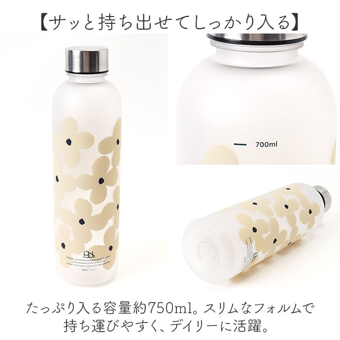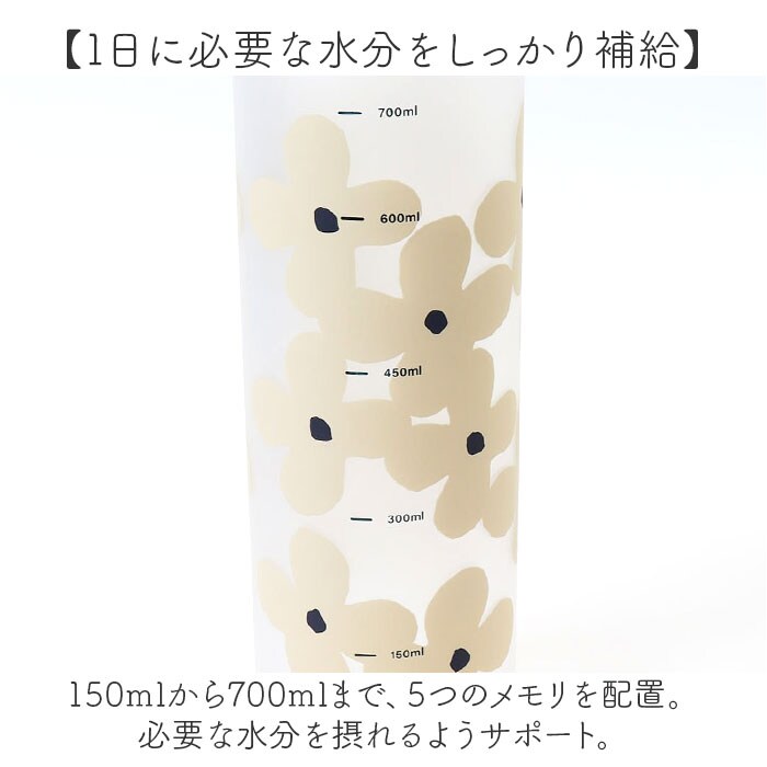 | 商品説明 | 【日々の水分補給の管理にぴったり】水分摂取量を把握◎常温・冷水用「Wpc.Patterns メモリ付ウォーターボトル」。【1日に必要な水分をしっかり補給】・150mlから700mlまで、5つのメモリを配置。必要な水分を摂れるようサポート。【ペットボトルのように直飲みOK】フタを開けてゴクゴク水分補給!程よい幅を設けた飲み口で、ドリンク準備もスムーズ。【サッと持ち出せてしっかり入る】たっぷり入る容量約750ml。スリムなフォルムで持ち運びやすく、デイリーに活躍。【気分の上がる、可愛らしいデザイン】クリアマットな本体に、花柄やアニマル柄などをプリント!ギフトにもおすすめ♪【Wpc.Patterns】心にいつも晴れもよう。日々を彩るデザインに囲まれて、みんなの心が晴れますように♪ |