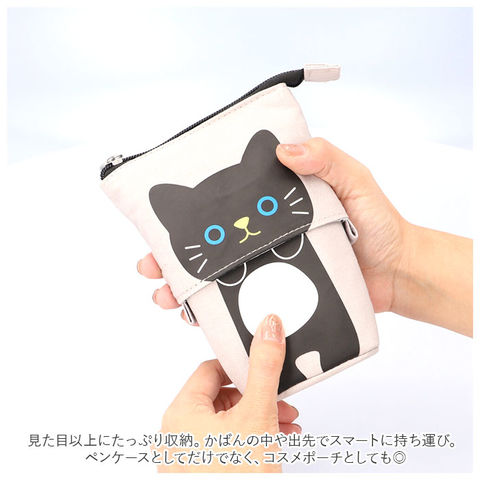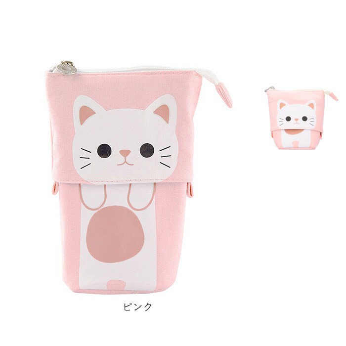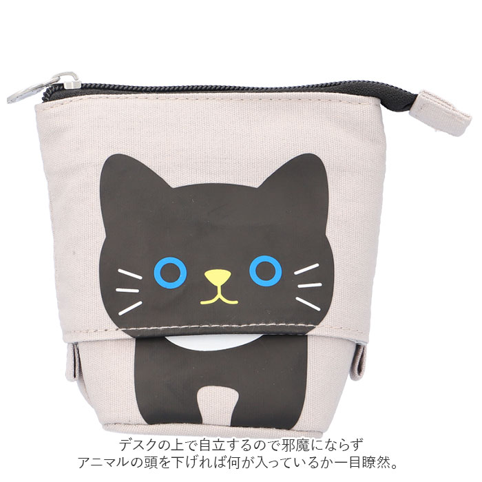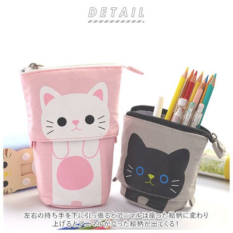 | 商品説明 | アニマルが立ったり座ったり可愛い☆立てて使えるペンケース。左右の持ち手を下に引っ張るとアニマルは座った絵柄に変わり、上げるとアニマルが立った絵柄が出てくる!デスクの上で自立するので邪魔にならず、アニマルの頭を下げれば何が入っているか一目瞭然。中には定規やペンを1~2本入れるのに便利なサイドポケットX3を装備。見た目以上にたっぷり収納。かばんの中や出先でスマートに持ち運び。ペンケースとしてだけでなく、コスメポーチとしても◎ |