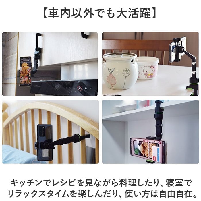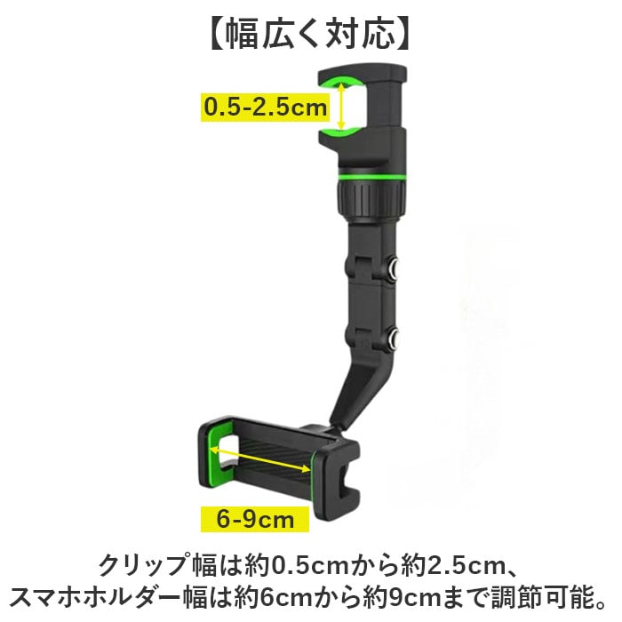 | 商品説明 | 【便利な車載ホルダー】バックミラーやダッシュボード周りに挟むだけで、スマホをしっかり固定できる◎【幅広く対応】クリップ幅は約0.5cmから約2.5cm、スマホホルダー幅は約6cmから約9cmまで調節可能。【360度自由な角度】ホルダー部分が360度回転し、縦でも横でも見やすい角度に調整できてナビや動画視聴も快適♪【ガッチリ固定】クリップとホルダーはフォームクッションが付いており、傷をつけることなくしっかり固定できる!【車内以外でも大活躍】キッチンでレシピを見ながら料理したり、寝室でリラックスタイムを楽しんだり、使い方は自由自在。 |