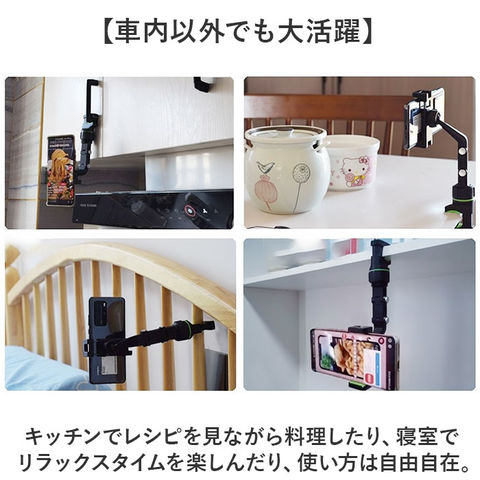 | サイズ | [全長]約24cm/[横]約8cm/[奥行]約4cm [クリップ幅]約0.5cm~約2.5cm(調節可能) [スマホホルダー幅]約6cm~約9cm(調節可能) ※サイズは当店計測の実寸サイズです。実際の商品ならびにメーカー表記サイズとは多少の誤差が生じる場合がございます。あらかじめご了承ください。 |