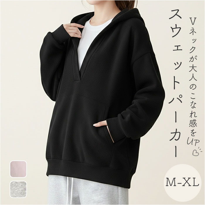 | 商品説明 | 【頼れる1枚】シンプルデザインで着回し力抜群のスウェットパーカー。【こなれ感漂うVネック】鎖骨が美しく見えるVネックデザインで、大人の抜け感を演出できるアイテム♪【ゆったりシルエット】体のラインを拾わないリラックスフィットで、気になる部分もしっかりカバー。【フード付きカジュアル】さりげないフードがこなれた印象を作り、デイリーコーデに取り入れやすい一枚◎【便利なフロントポケット】スマホや小物をさっと入れられる実用的なポケット付きで、お出かけも快適〇 |