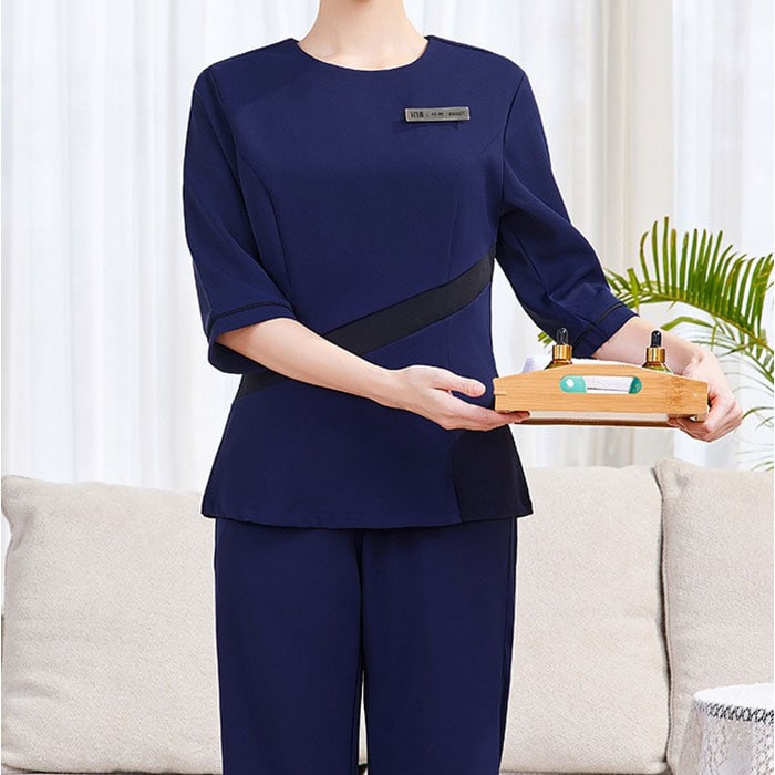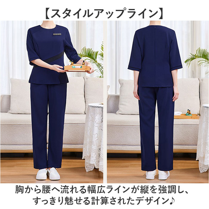 | 商品説明 | 【プロ仕様の本格制服】エステサロンで輝く、洗練されたセットアップ【現場で映える上品さ】サロンの雰囲気にぴったりな洗練された佇まいで、お客様に信頼感を与える印象!【スタイルアップライン】胸から腰へ流れる幅広ラインが縦を強調し、すっきり魅せる計算されたデザイン♪【動きやすさ抜群の設計】適度に伸縮する素材だから施術中も快適で、一日中ストレスフリーな着心地◎【着脱ラクラク仕様】トップスはバックファスナー、パンツはゴムで自分サイズにフィットする機能性〇【実用的なポケット付き】サイドポケット搭載で小物をサッと収納でき、仕事効率がアップする便利さ。 |
