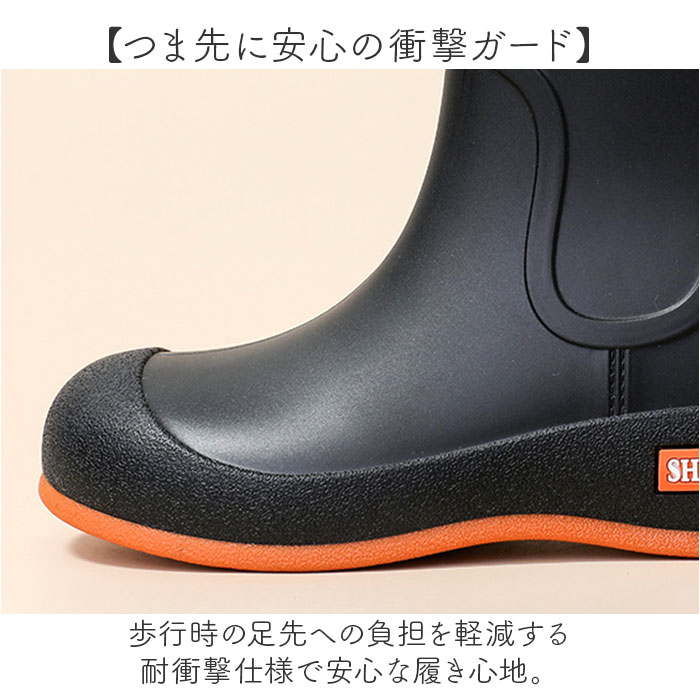 | 商品説明 | 【雨の日だっておしゃれ】シンプルデザインで通勤も休日も使えるレインブーツ登場!【シーンを選ばない万能デザイン】シンプルな無地だからどんなコーディネートにも合わせやすいデザイン性。【つま先に安心の衝撃ガード】歩行時の足先への負担を軽減する防衝撃仕様で安心な履き心地。【柔らか素材で長時間快適】ヒール部分に柔軟性のある素材を採用し足が痛くなりにくい設計。【グリップ力で滑りにくい】雨や雪の日でも安心して歩ける滑りにくいソール構造が頼もしい。【足首曲がる楽ちん仕様】足の動きにフィットする屈曲性で歩きやすい。 |