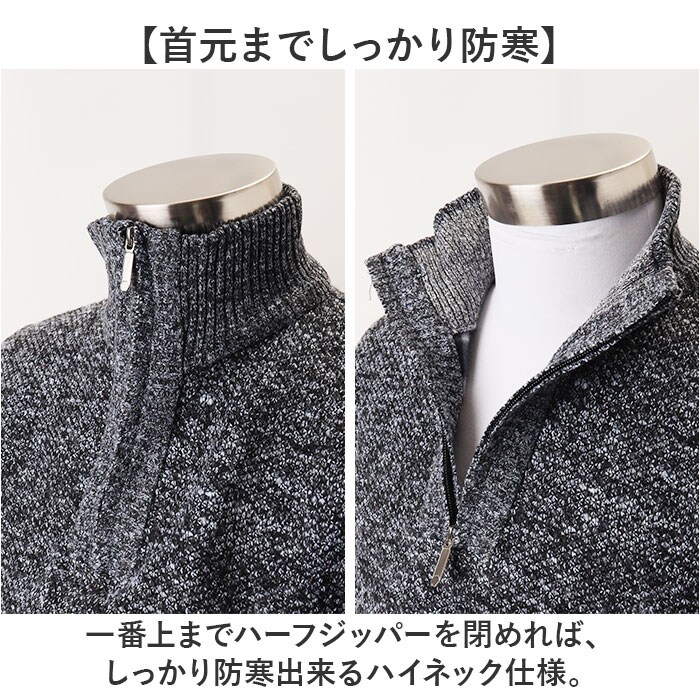| 商品説明 | 【カジュアルコーデの定番】秋冬コーデに大活躍!ハイネックニットセーターが登場。【幅広く着回せる】シンプルなデザインだから仕事シーンからプライベートまで着れる万能アイテム。【首元までしっかり防寒】一番上までハーフジッパーを閉めれば、しっかり防寒出来るハイネック仕様。【ふんわりあったかな生地感】表地はニット、裏は起毛生地になっており軽くて暖かい仕上がりに。【大きいサイズまで対応】Lサイズから3XLまでの幅広い体型にフィット。 |