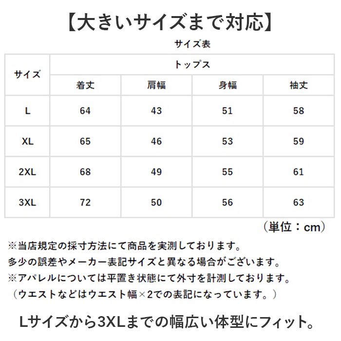 | サイズ | [メンズ] ・Lサイズ ・XLサイズ ・2XLサイズ ・3XLサイズ ※サイズについて詳細は、商品画像の中にあるサイズ表をご覧くださいませ。 |