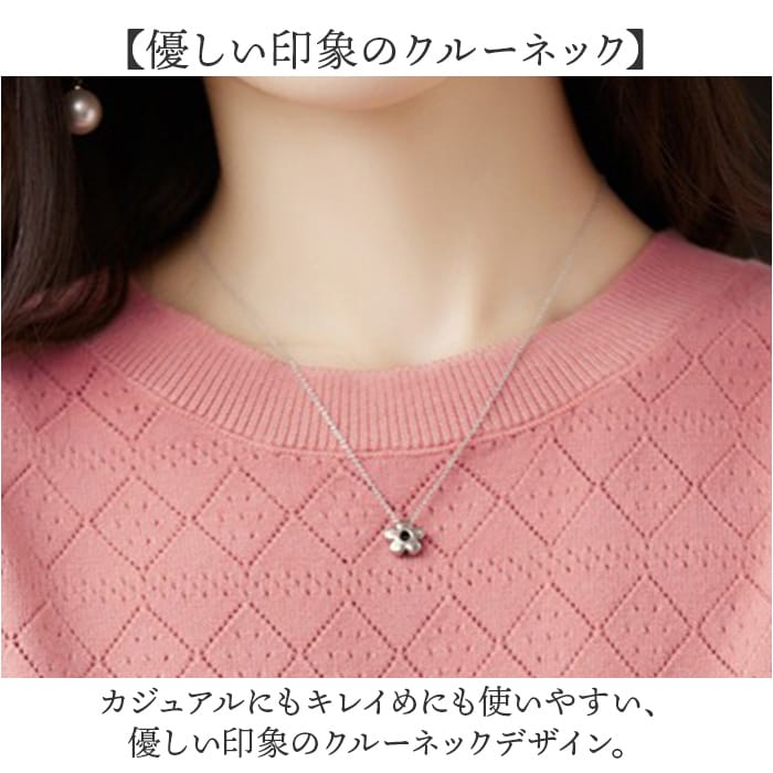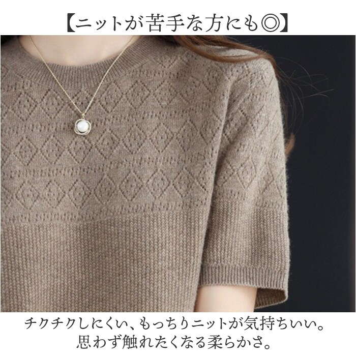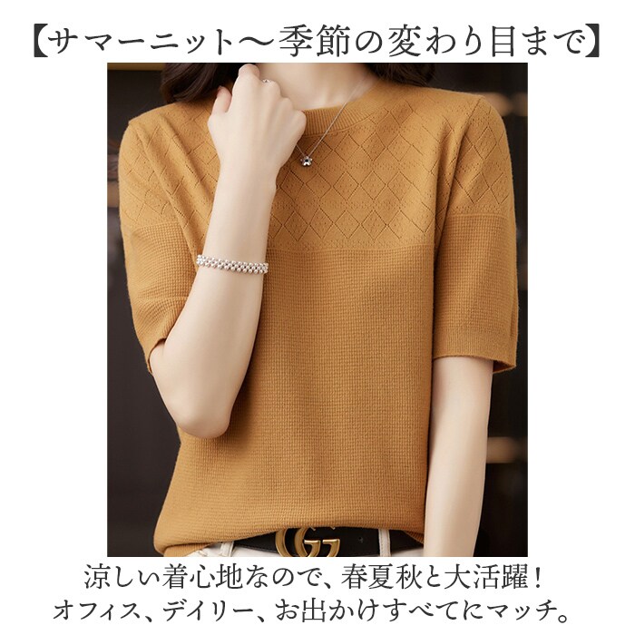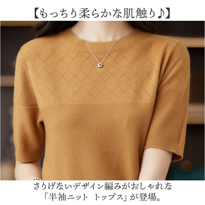 | 商品説明 | 【もっちり柔らかな肌触り♪】さりげないデザイン編みがおしゃれな「半袖ニット トップス」が登場。【着るだけで垢ぬける1枚】シンプルに見えて、デザイン性の高いニットトップス。表情豊かな編み目でおしゃれ魅せ♪【ニットが苦手な方にも◎】チクチクしにくい、もっちりニットが気持ちいい。思わず触れたくなる柔らかさ。【サマーニット~季節の変わり目まで】涼しい着心地なので、春夏秋と大活躍!オフィス、デイリー、お出かけすべてにマッチ。【優しい印象のクルーネック】カジュアルにもキレイめにも使いやすい、優しい印象のクルーネックデザイン。【お好みのカラーをチョイス】いろんなカラーをご用意。差し色から定番まで、イロチ買いをするのもオススメ。 |