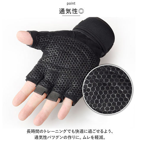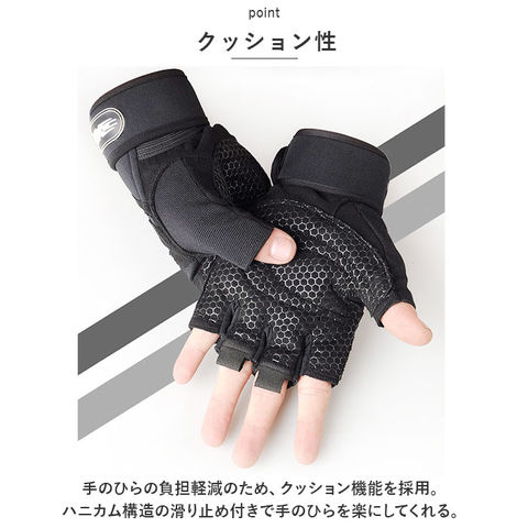 | 商品説明 | トレーニングのパフォーマンスをUP!ジムや自宅での筋トレに「トレーニンググローブ」が登場。【フィット感】バツグンのフィット感で、物を握りやすく、動きやすくしてくれるアイテム。手の湾曲に合わせた設計で効率UP!【クッション性】手のひらの負担軽減のため、クッション機能を採用。ハニカム構造の滑り止め付きで手のひらを楽にしてくれる。【手首の保護】手首のバンドはしっかり巻ける長めの設計。手首を固めて保護できるのでケガの防止効果も◎安全性UP。【軽量】重さが気にならないよう、軽量設計に。トレーニング中の集中力を邪魔しない。【サポートフック】汗をかいてもグローブをサッと外せるよう、サポートフックを搭載。使いやすいこだわりポイント☆【通気性◎】長時間のトレーニングでも快適に過ごせるよう、通気性バツグンの作りに。ムレを軽減。 |