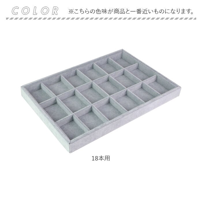 | サイズ | 【共通】 [縦]約3cm/[横]約34.5cm/[奥行]約24cm 【内マス】 (18本用)[縦]約7cm/[横]約5cm (24本用)[縦]約5cm/[横]約4.5cm ※サイズは当店計測の実寸サイズです。実際の商品ならびにメーカー表記サイズとは多少の誤差が生じる場合がございます。あらかじめご了承ください。 |