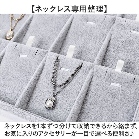 | 商品説明 | 【大切な宝物を守る】ネックレスをすっきり整理できる、プロ仕様の収納ケース。選べる2サイズ展開。【ネックレス専用整理】ネックレスを1本ずつ分けて収納できるから絡まず、お気に入りのアクセサリーが一目で選べる便利さ♪【選べる2サイズ展開】18本用と24本用から自分のコレクションに合わせて選べる、収納力にこだわった2つのラインナップ◎【取り外し可能なパッド式】パッドを取り外すことで、自分好みの収納スタイルに!自由にカスタマイズできるのが嬉しいポイント。 |