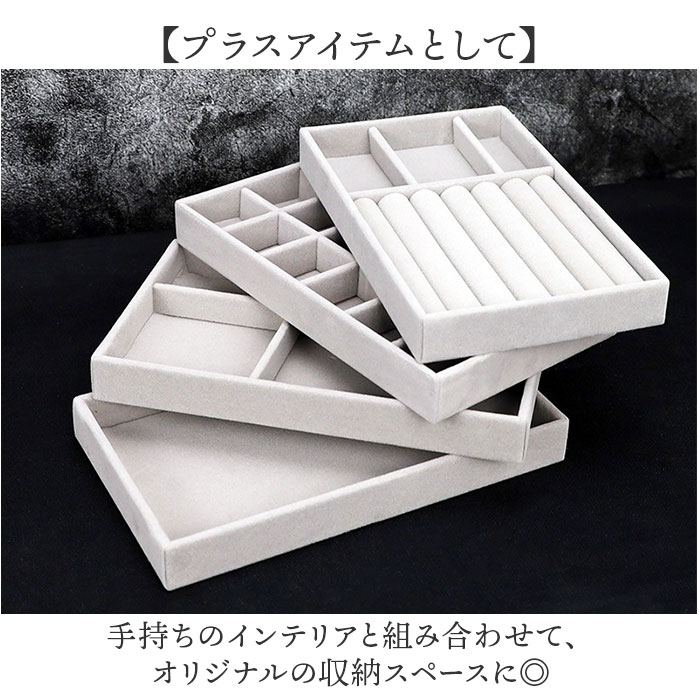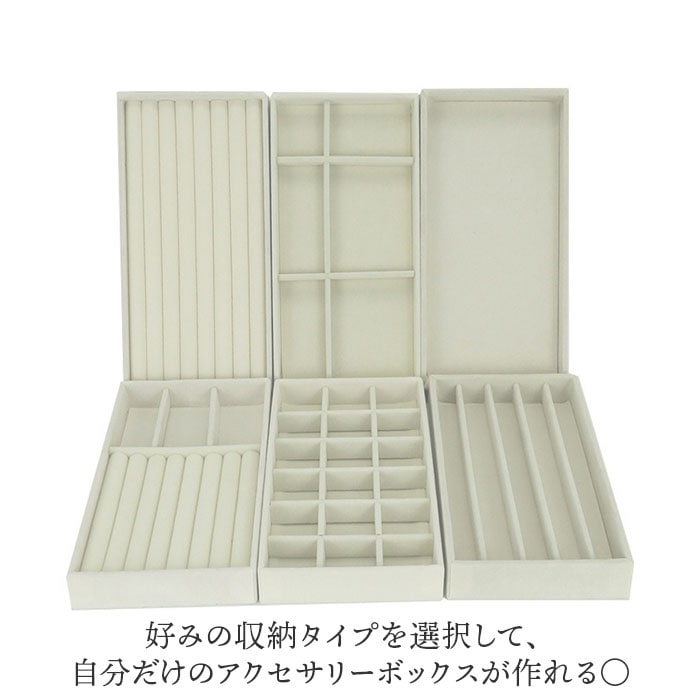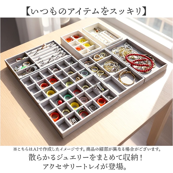 | 商品説明 | 【いつものアイテムをスッキリ】散らかるジュエリーをまとめて収納!アクセサリートレイが登場。【プラスアイテムとして】手持ちのインテリアと組み合わせて、オリジナルの収納スペースに◎【自由に選べる】好みの収納タイプを選択して、自分だけのアクセサリーボックスが作れる〇【見せる収納】大切なアクセサリーも一目で分かるからすぐ取り出せる! |