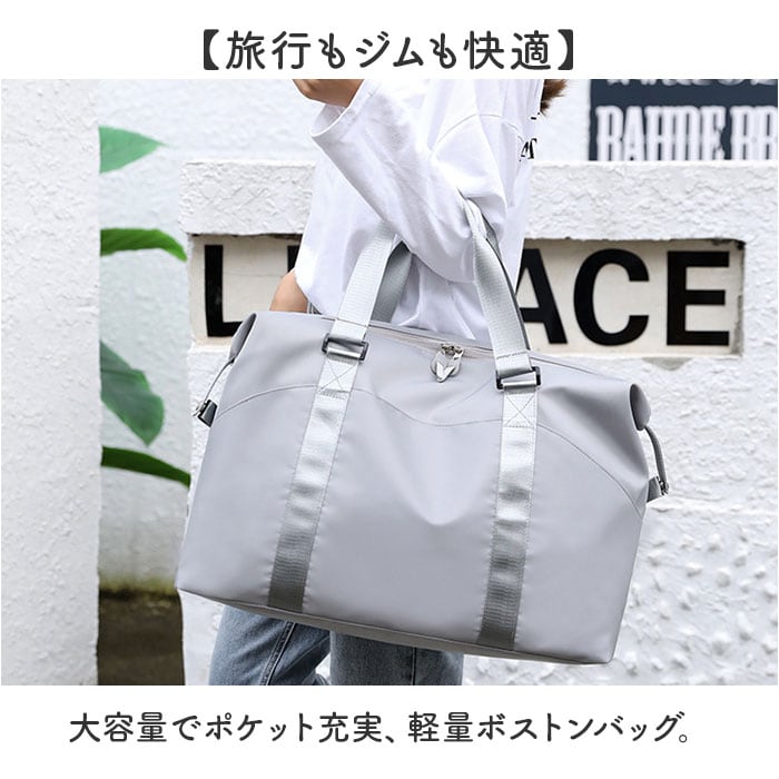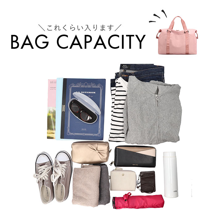 | 商品説明 | 【旅行もジムも快適】大容量でポケット充実、軽量ボストンバッグ。【フロント3ポケットで整頓】外側に3つのオープンポケット付きで小物がすぐ取り出せる♪【背面ファスナーで安心】背面にファスナーポケット付きで貴重品管理もしっかりできる〇【内側収納も充実仕様】オープンポケット2つとファスナー1つで荷物を整理整頓!【キャリーオン対応で便利】キャリーバッグに通せるので旅行時の移動がとってもスムーズ◎【軽量&サイド調整OK】軽い素材でスナップボタン留めによる形状調整も可能。 |