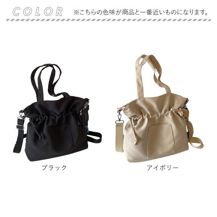 | 商品説明 | 【肩掛けも斜めも自在なバッグ】毎日のお出かけがもっと軽やかになる巾着デザインのキャンバスバッグ。【2WAYで使える巾着バッグ】肩掛けにも斜め掛けにも切り替えできるからお出かけも通勤もこれひとつで叶う◎【A4もすっぽり入る大容量】巾着を広げればA4サイズがすっぽり収まるから書類や雑誌の持ち運びにも困らない♪【小物の出し入れもスムーズ】フロントのオープンポケットでスマホや鍵などすぐ使うものにサッと手が届く!【ベルト着脱で表情チェンジ】ショルダーベルトは取り外しができるからシーンや気分に合わせて使い分けられる。【整理上手な内側ポケット】内側にオープンポケット2つとファスナーポケット1つを備えているから荷物が迷子にならない〇 |