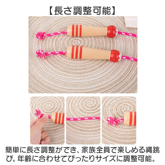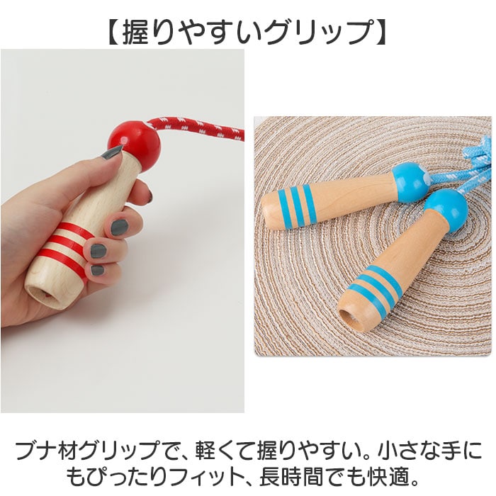 | 商品説明 | 【長さ調整可能】簡単に長さ調整ができ、家族全員で楽しめる縄跳び。年齢に合わせてぴったりサイズに調整可能。【飛びやすい重さ】適度な重みで初心者でも跳びやすく、リズムをつかみやすい設計。運動が苦手でも安心。【足に優しい設計】綿素材のため柔軟性があり、足が引っかかっても痛くない◎安全設計で安心して遊べる。【握りやすいグリップ】ブナ材グリップで、軽くて握りやすい。小さな手にもぴったりフィット、長時間でも快適。【楽しい運動アイテム】運動不足解消や体力作りに最適。遊び感覚で楽しめるアイテムで、外遊びにもぴったり。 |