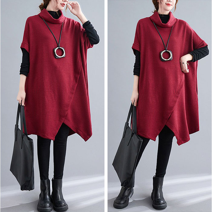 ニットワンピース レディース チュニック【ワインレッド】【XLサイズ】