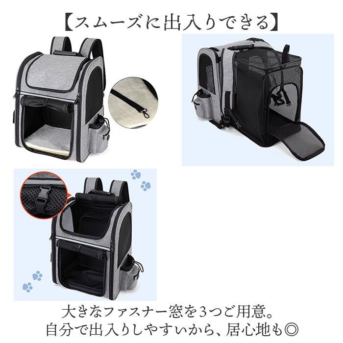 | 商品説明 | 【キャリーもハウスもこれ1つで◎】お出かけ、旅行、通院、災害時に大活躍する「ペットリュック ペットキャリーバッグ」が登場。【お顔が見える窓がたくさん】いろんな角度からペットの様子を確認できるメッシュ窓を多数配置。通気性も良く苦しくない。【拡張するとペットハウスに!】お部屋が広くなる拡張タイプ。必要に応じて出したりしまったりでき、災害時にも活躍。【スムーズに出入りできる】大きなファスナー窓を3つご用意。自分で出入りしやすいから、居心地も◎【ゆったりスペースでリラックス】充分な広さがあるリュックだから、窮屈さを感じにくい。ハウスならごろん姿勢もできる♪※耐荷重15キロ【持ちやすいからパパママも楽ちん】フロントベルトで持ちやすさUP!長時間の移動も負担なく、お出かけのハードルを下げてくれる【脱走防止のストラップつき】リードを取りつけができるストラップを内部に搭載。ダブルロックで抜け出しも防止。【小物ポケットがたくさん!】おやつや診察券、ゴミ袋などを収納できるポケットが充実。お出かけ先でもスムーズに過ごせる【コンパクトに収納OK】底板は取り外し可能なので、使わない時はコンパクトに収納。玄関や車など、場所を取らない。【夜道も安心のリフレクター】車のライトなどを反射する、リフレクターつき。夜間や夕暮れ、天気が悪い日も安心。 |