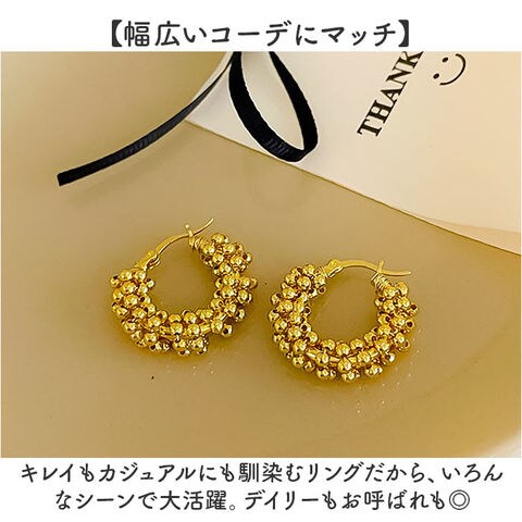 | 商品説明 | 【つぶつぶがキュート☆】大ぶりデザインで顔周りを華やかに!「つぶつぶピアス」が登場。【キラッと目を惹くつぶつぶデザイン】ワンカラーで甘さを抑え、大人っぽい雰囲気に!キラッと華やかで視線を集めること間違いなし☆【つぶつぶデザインで垢ぬける】つぶつぶが可愛いアクセント!大きめのデザインだから存在感あり、カッコ可愛く仕上がる。【幅広いコーデにマッチ】キレイもカジュアルにも馴染むリングだから、いろんなシーンで大活躍。デイリーもお呼ばれも◎【ちょっとしたギフトにも】おしゃれ好きな方や、アクセにこだわっている方、小物好きな方へ贈り物にするのもGOOD。 |