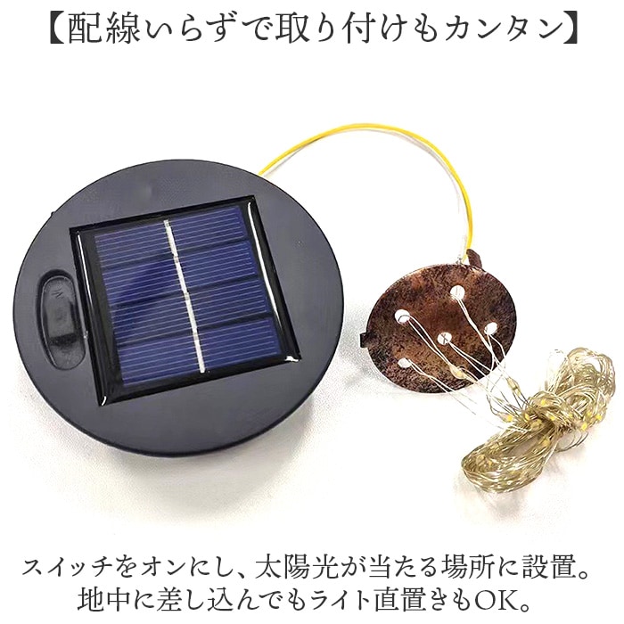 | 商品説明 | 【簡単に設置できて美しい外観に】お庭を優しい光でおしゃれに彩る♪埋め込み式の「ソーラーガーデンライト」。【周囲が暗くなると自動で点灯】ソーラーパネルに太陽光を当てるだけで日中に充電、暗くなると自動点灯するソーラー充電式◎(※1)明暗センサーを搭載。【電気代0円!繰り返し使えてエコ】電池交換の手間を省け、お財布に優しいライト。電源不要で場所を選ばない◎【配線いらずで取り付けもカンタン】スイッチをオンにし、太陽光が当たる場所に設置。地中に差し込んでもライト直置きもOK。【雨の日も使える生活防水仕様】やや雨が降っている時でも、幻想的な光で照らしてくれるのが嬉しい!(※2)完全防水ではないため、強い雨や台風の日には使用しないでください。【玄関やお庭、パーティーの装飾に】アンティーク感のあるじょうろモチーフ。水を表現した部分は、角度などを自由にチェンジ♪ |
